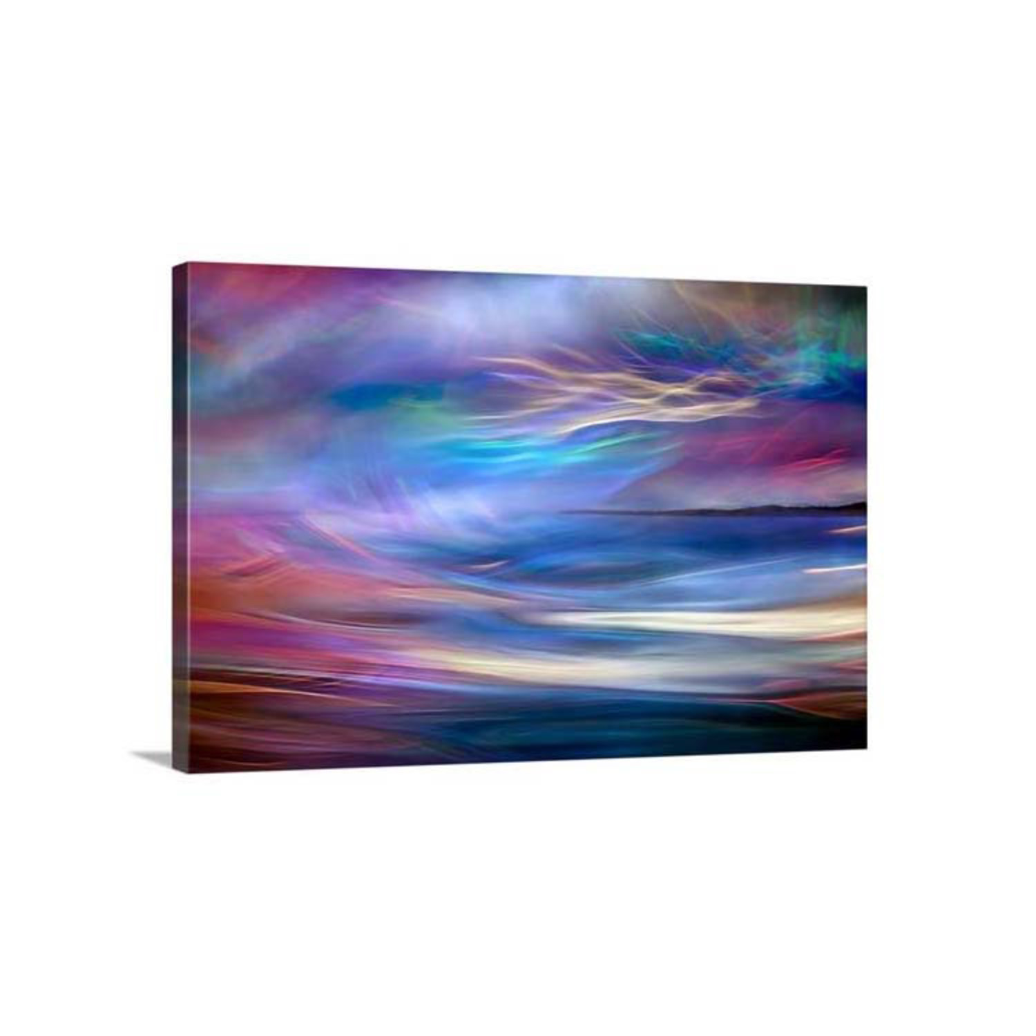 This proprietary canvas print of artist Ursula Abresch's Evening Ferry Ride provides a classic and distinctive texture, while UV protectant archival inks produce a vibrant, scratch and fade resistant print. The finished canvas print is mounted to and wrapped around a sturdy yet lightweight board to protect against warping or loose, sagging prints. It is then finished with a closed matboard backing and includes pre-installed, ready-to-hang sawtooth hardware.