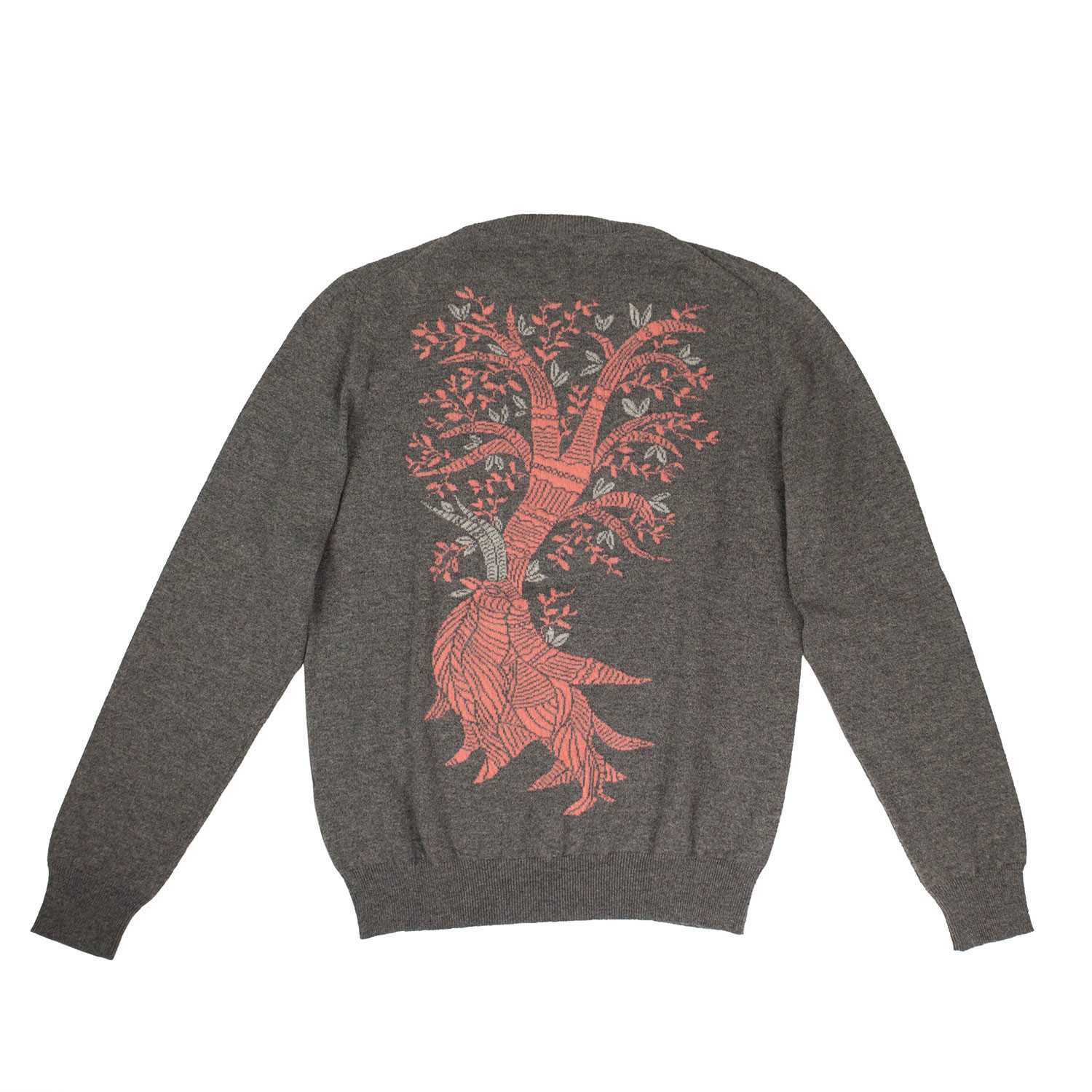 Cashmere Tree Design Sweater // Gray + Coral + Gray