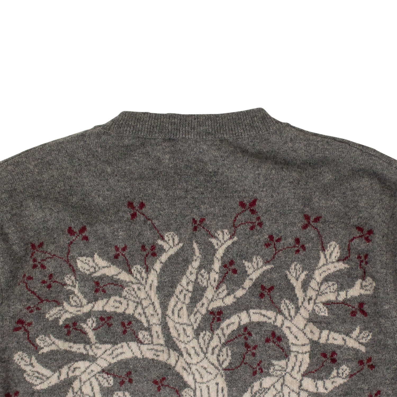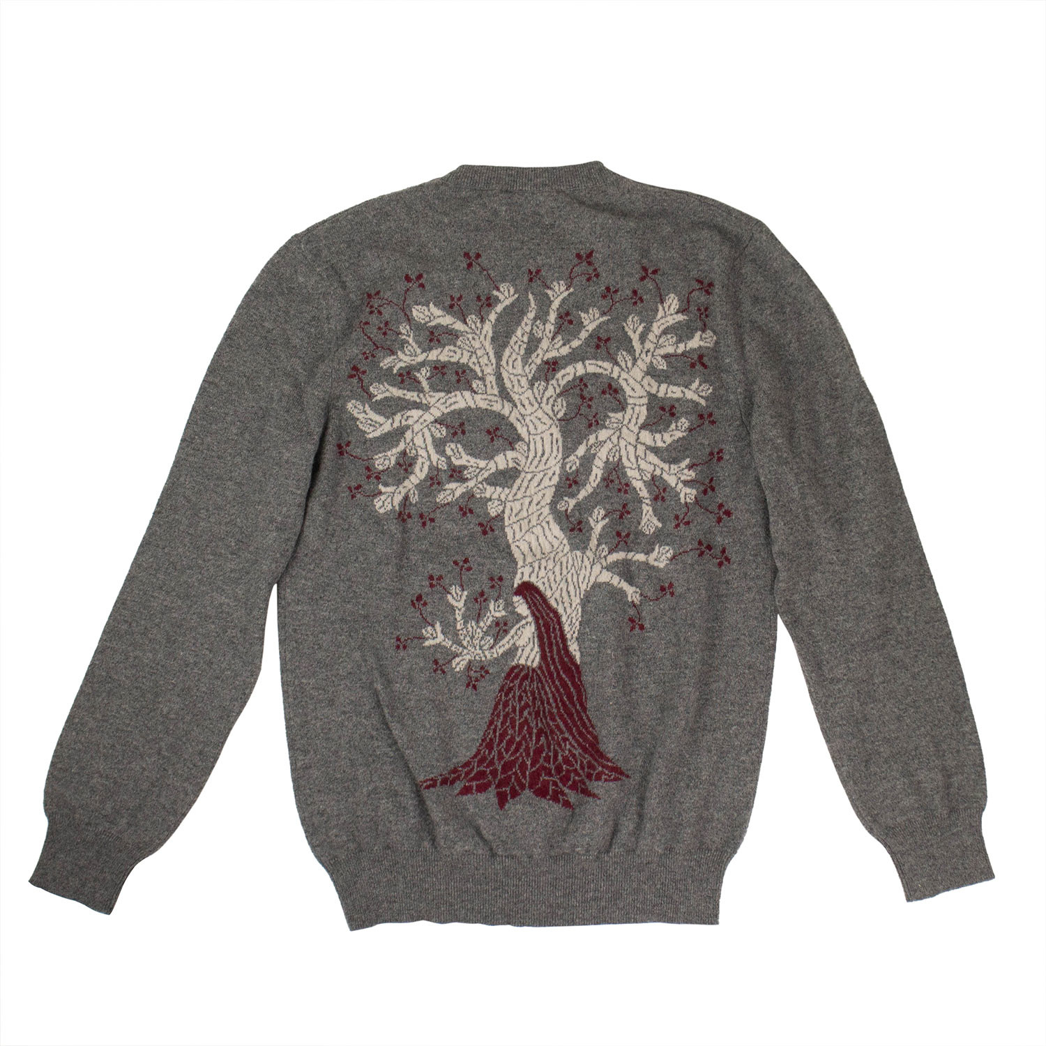 Cashmere Tree Design Sweater // Gray + Maroon + Tan