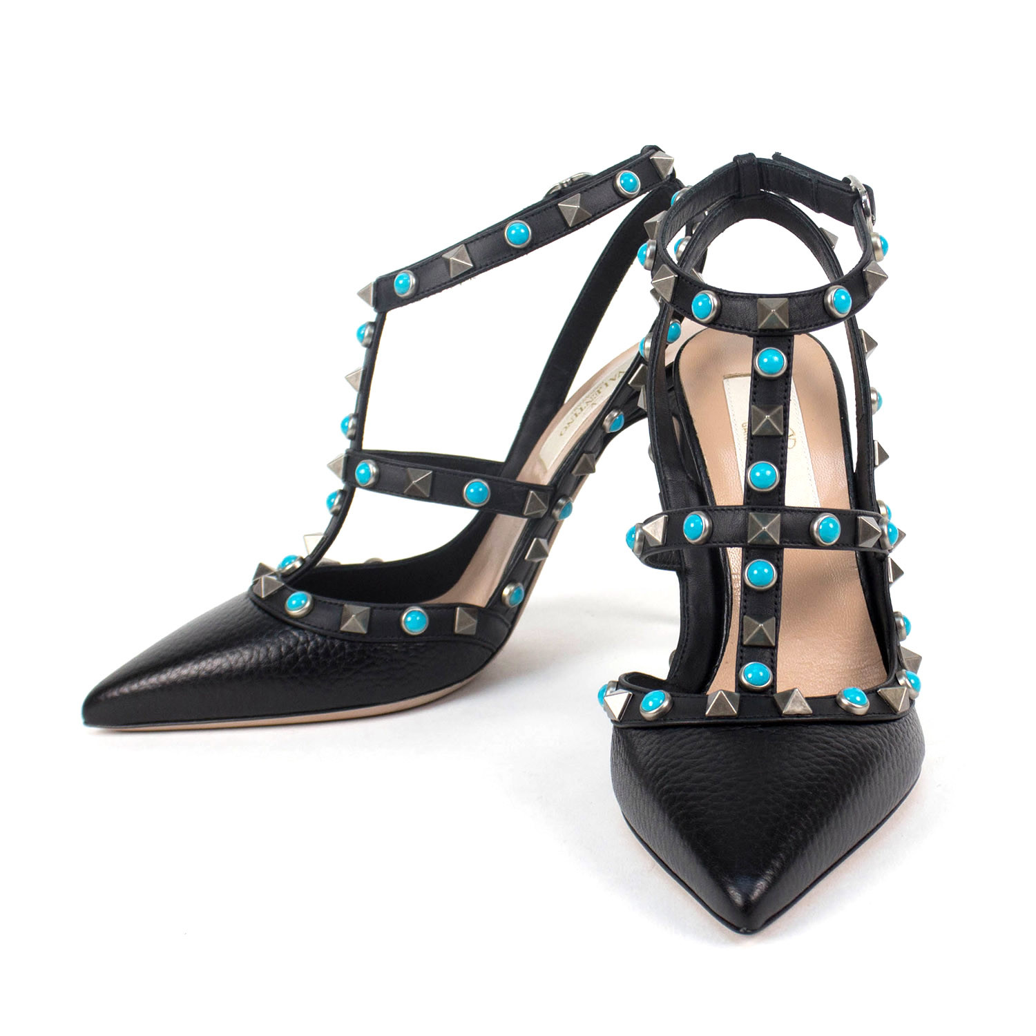 Valentino // Rockstud Rolling Turquoise Stone Slingbacks // Black