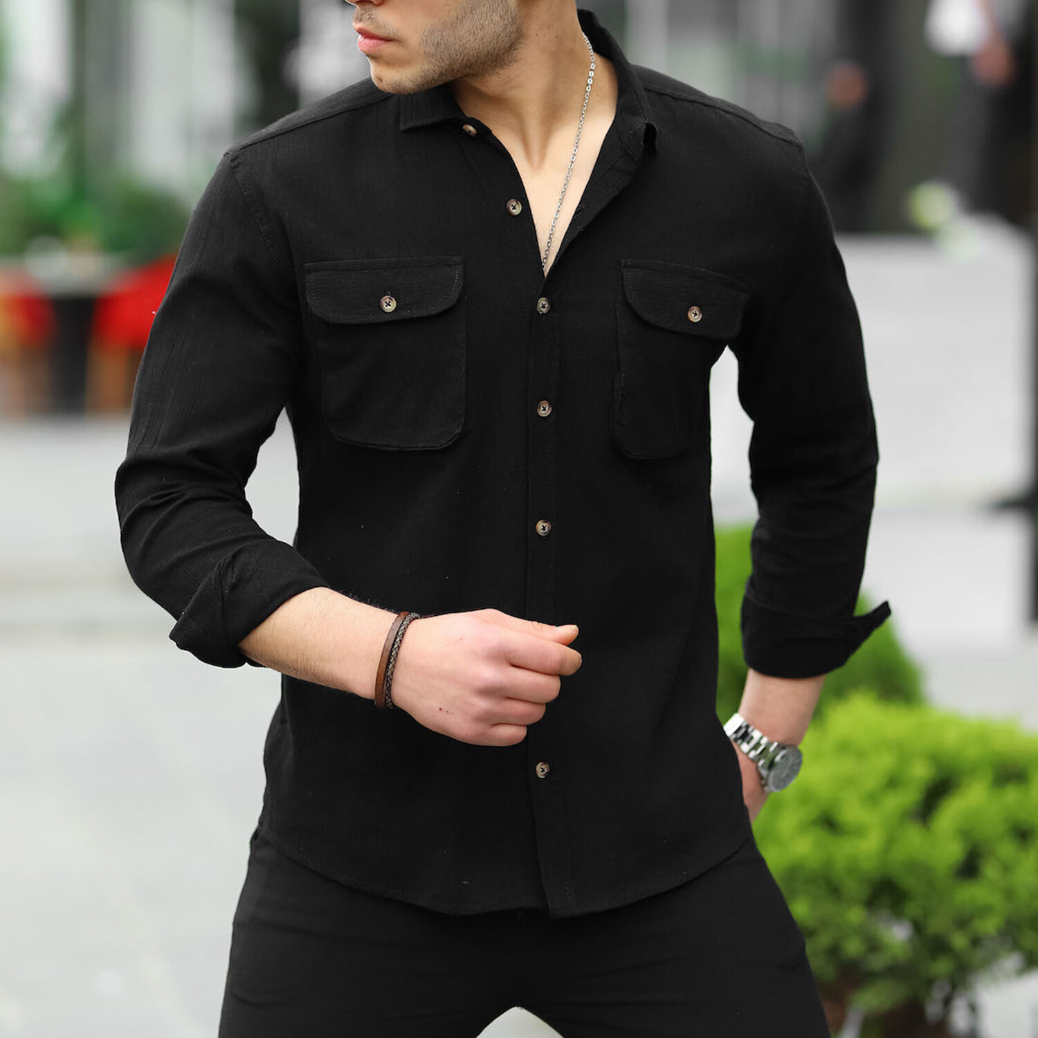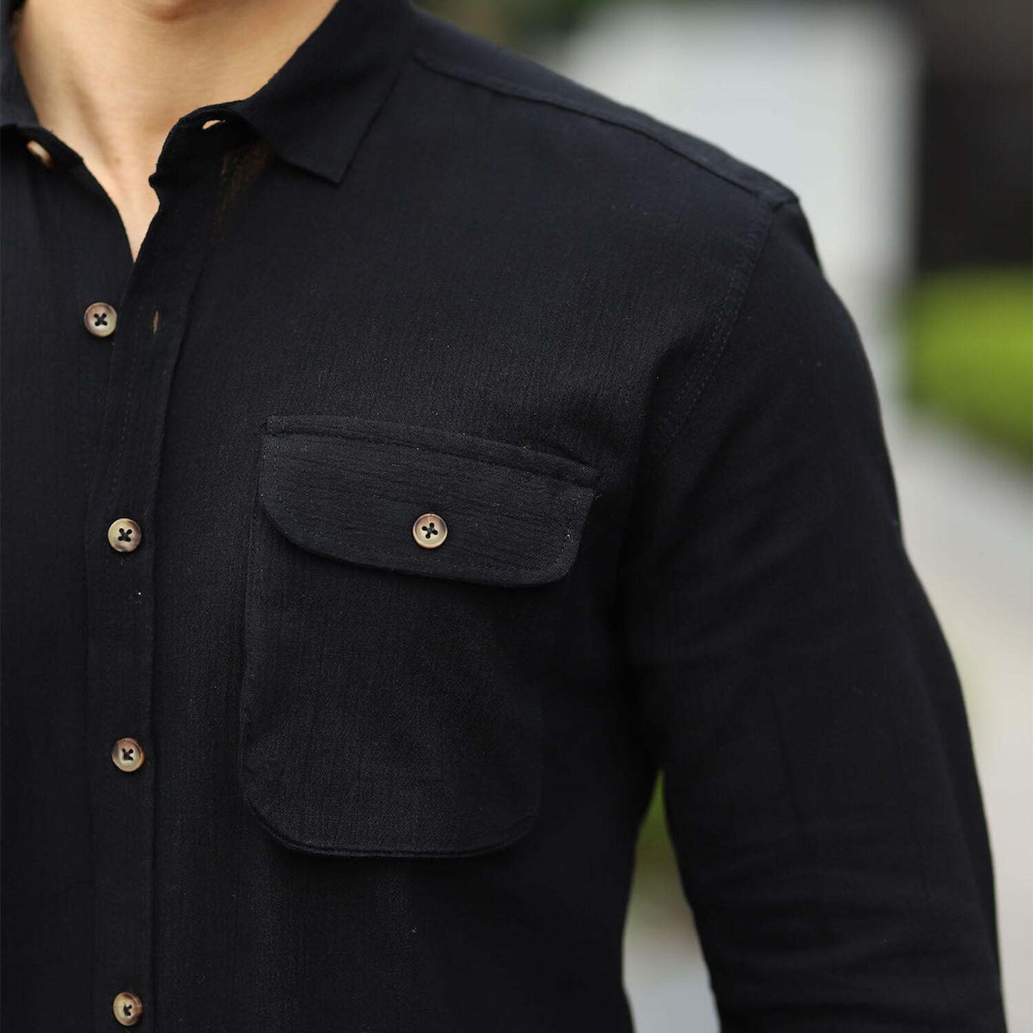 Double Pocket Button-Up // Black