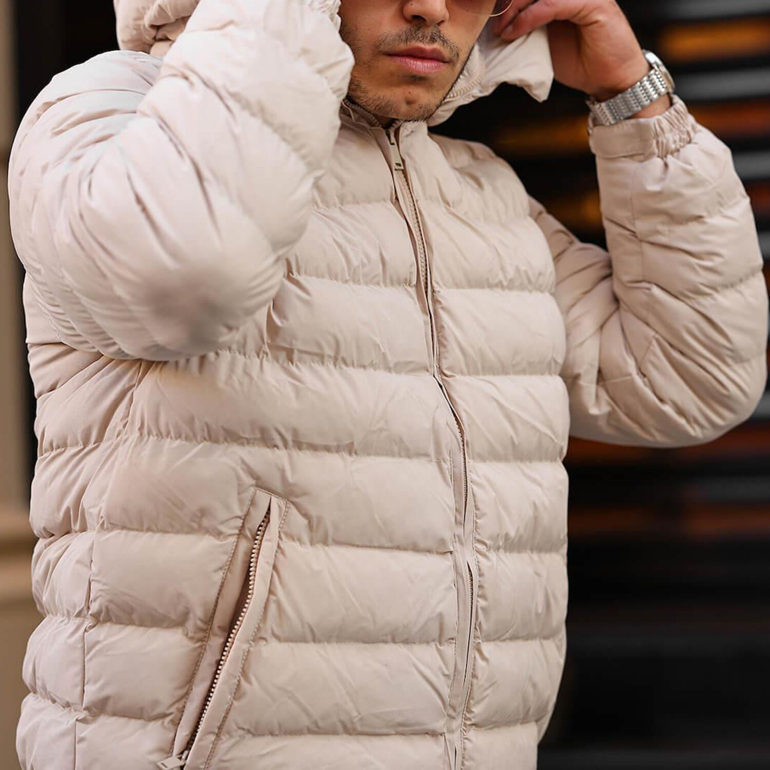 Artificial Goose Feather Lightweight Puffer Jacket // Light Beige
