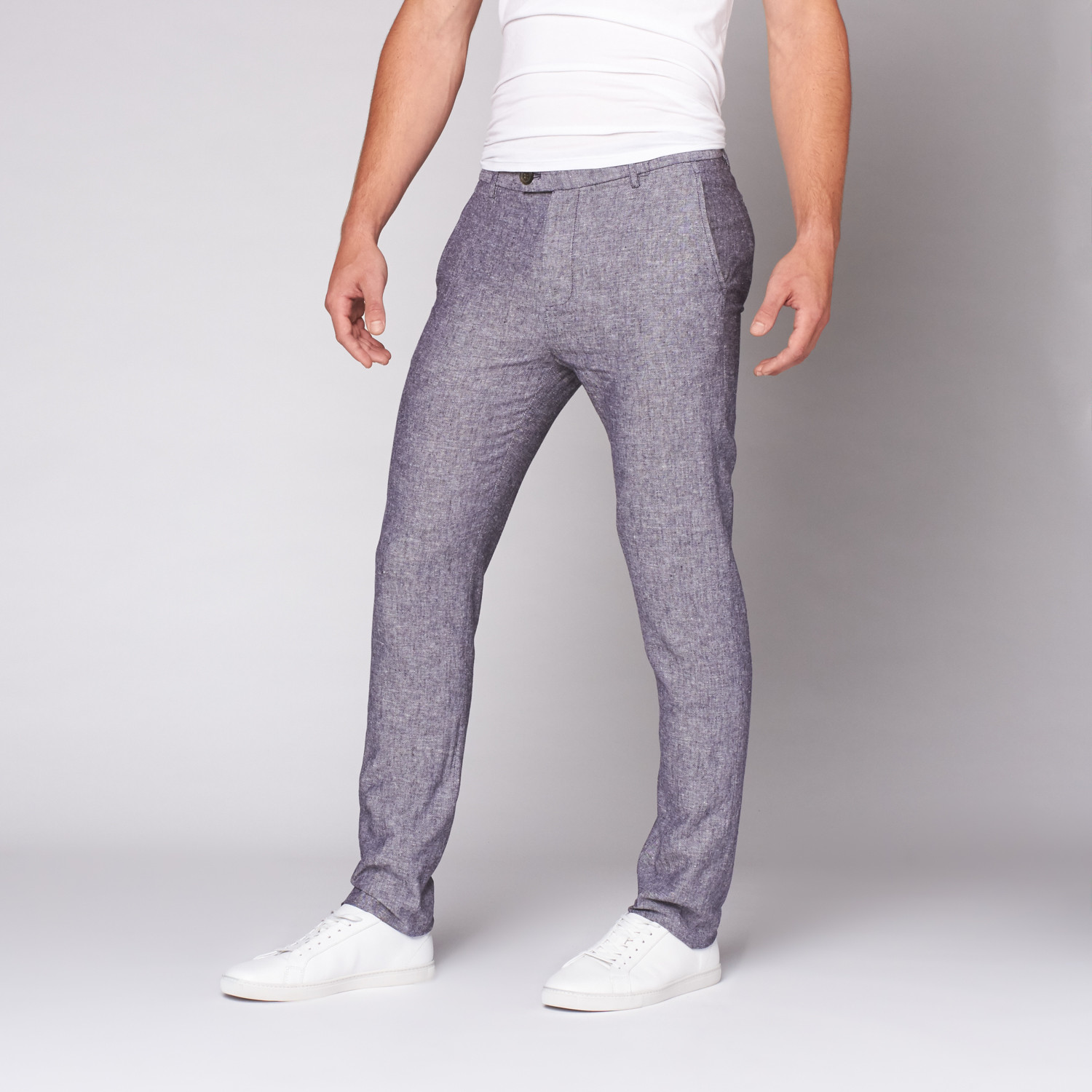 This Classic Suit Pant is a smart, casual option perfect for summer. With a navy-white linen construction and button-through back pockets, it's the perfect way to outfit yourself day in, day out.