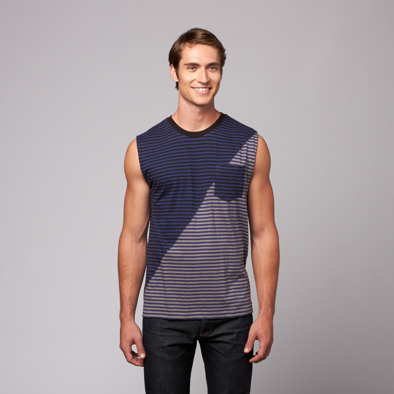 This Paneled Stripe Muscle Tee is a smart, casual shirt perfect for summer. With a diagonally color-blocked construction, it's the perfect way to outfit yourself day in, day out.