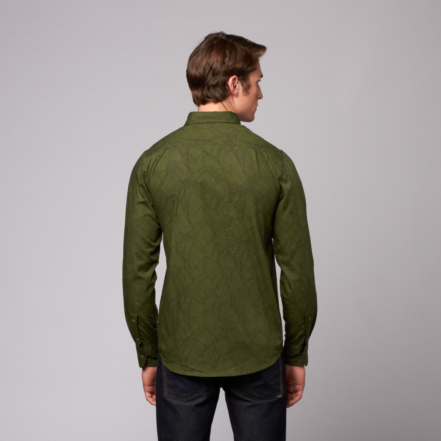 This Printed Leaves Poplin Shirt is a smart, casual option perfect for summer. With a dense leaf print, it's the perfect way to outfit yourself day in, day out.