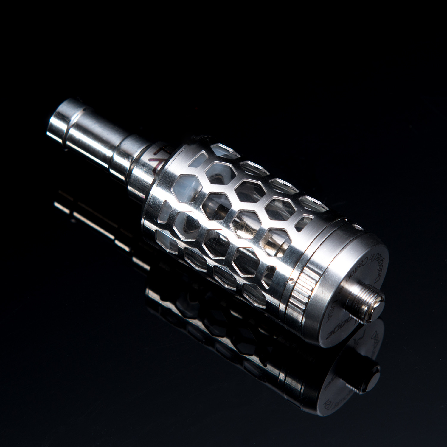 The JATO Bottom Vertical Coil adjustable airflow tank by Vapage is the next generation of powerful tank systems. Equipped with 4 adjustable air-flow configurations, the JATO conforms to your desired performance. Made with premium grade 303 stainless steel that will never rust, it's been built with a removable stainless steel honeycomb shield to protect the premium glass tank. The bottom cap also features a spring loaded positive contact pin. Bottom cap is 22mm for a flush fit to your vapage mod. Make every day more beautiful with this coil tank that will outlast the rest of your rig.