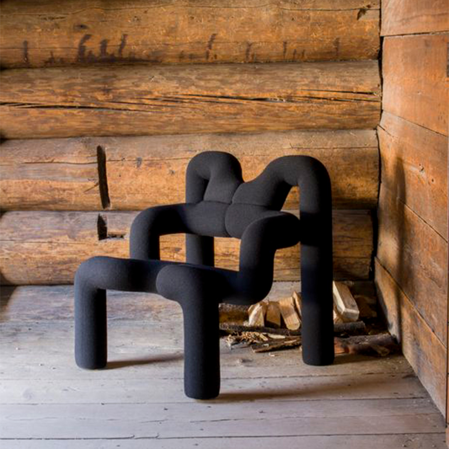 The Ekstrem is a chair as much as it is an abstract sculpture. It's a revolution in sitting. Face forward, backward, sideways, or any way you like. Relax sideways with your feet propped up on the armrests, or sit backwards with the front of your torso against the chair’s back. The sky's the limit.