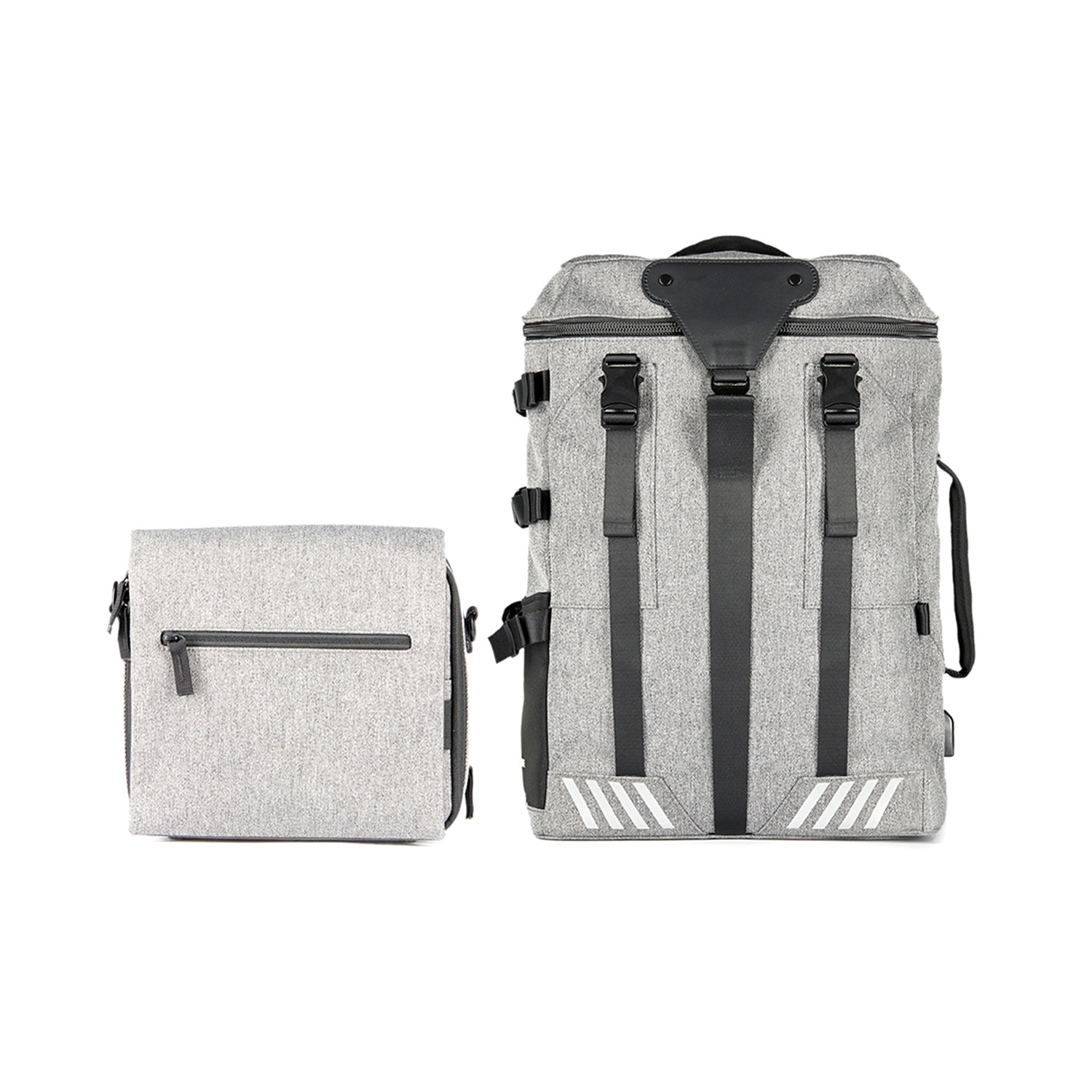 The Transformer A comes with two separate bags, the main body backpack and the modular messenger bag. The modular messenger bag can easily attach to the main body for extra storage, used on its own, or left behind. The main body backpack has in impressive 25L capacity, and can easily fit all of your daily needs for work and school. The modular messenger bag is perfect for traveling, taking photos, or going to the gym. It also comes with removable dividers for organizing smaller items like your camera and two lenses, or other electronic accessories, and is expandable to let you fit even more.