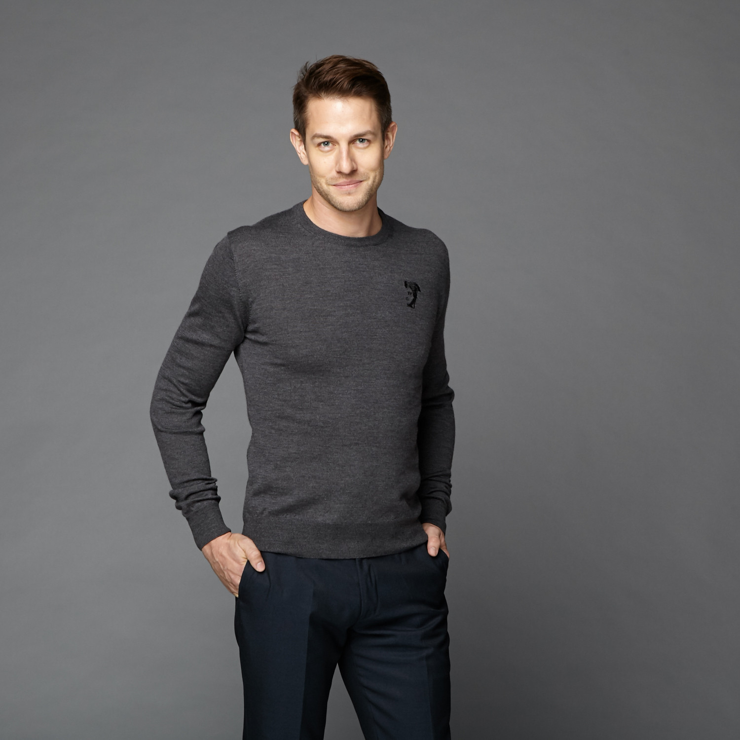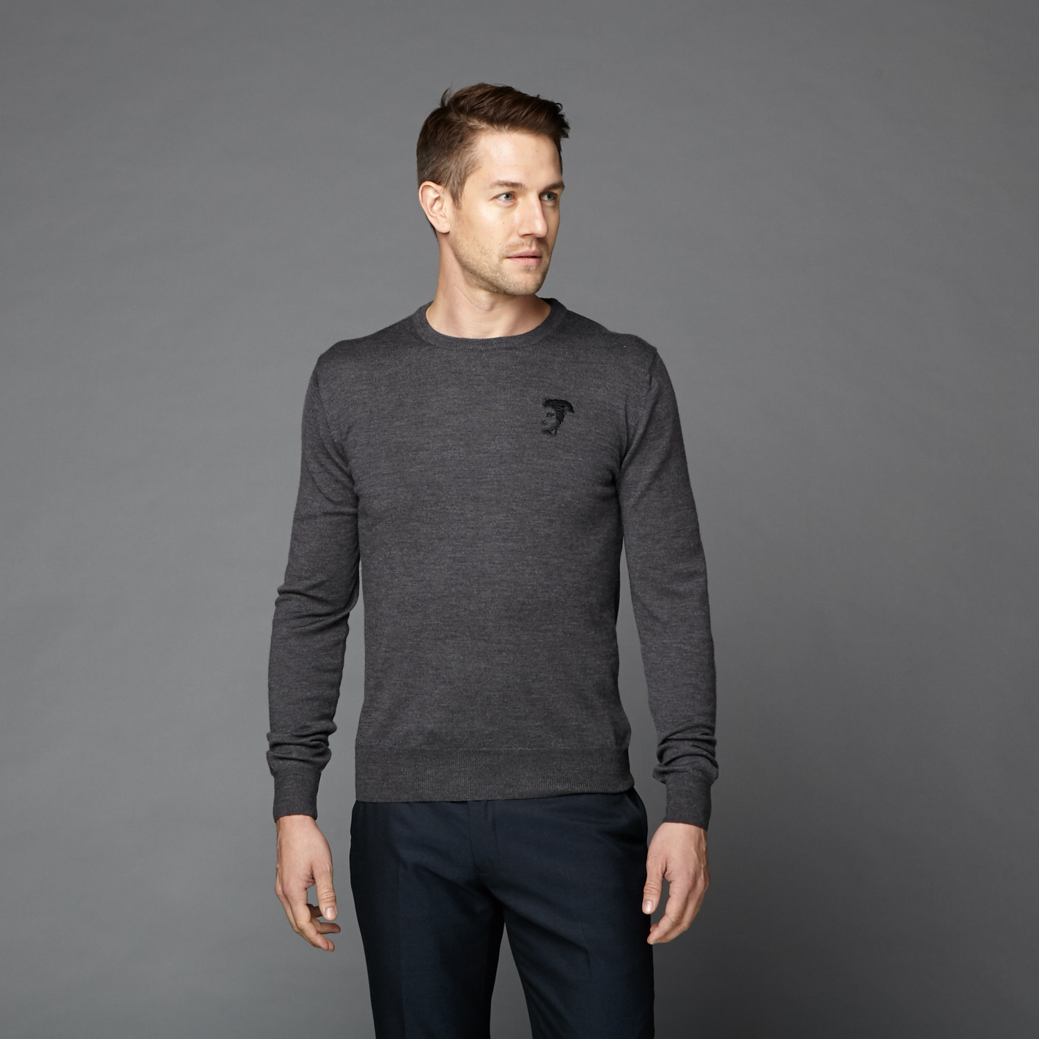 Versace // Wool Crew Neck Sweater // Charcoal