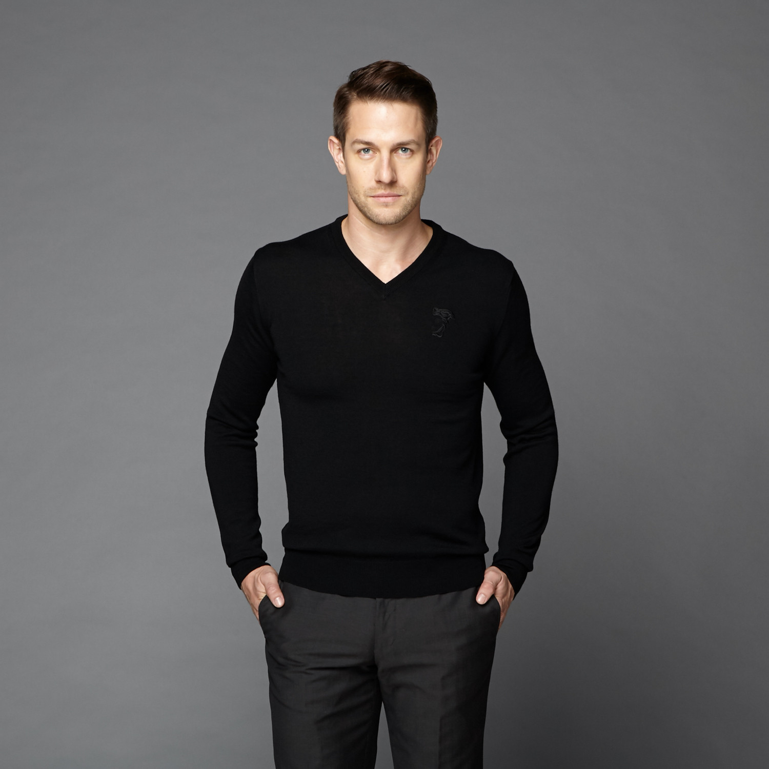 This Versace sweater is the perfect essential for business lunches and casual brunches. The pullover's half Medusa face embroidery on the chest makes it a clear-cut designer piece, while fine ribbing of the cuffs and hem helps it hold a slim, flattering shape.