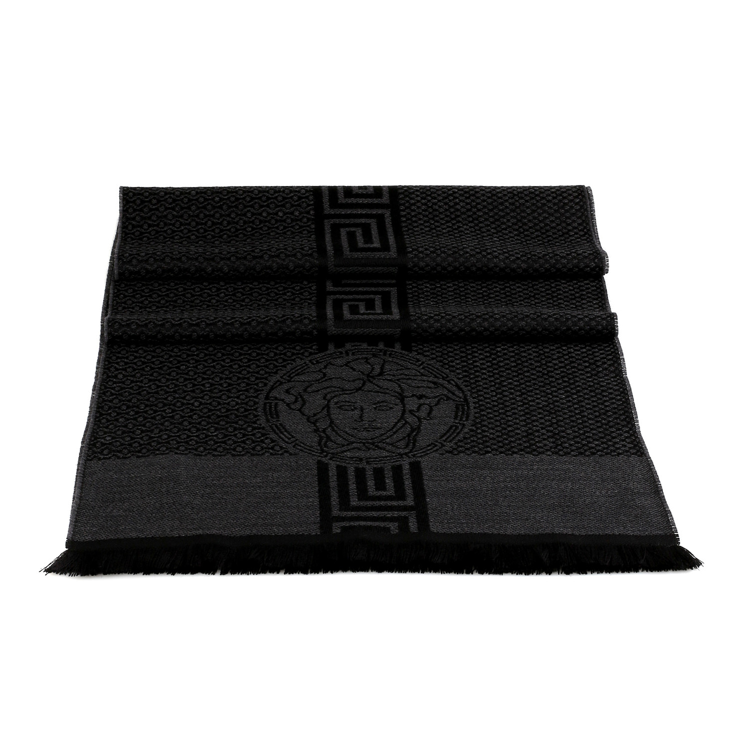 Whether you wear it to swathe yourself in Italian style or merely to ward off an evening chill, this sumptuous Versace scarf is a timeless accessory you'll reach for every time you head out the door. Done in the richest of wools, this piece adds instant luxury to any look.