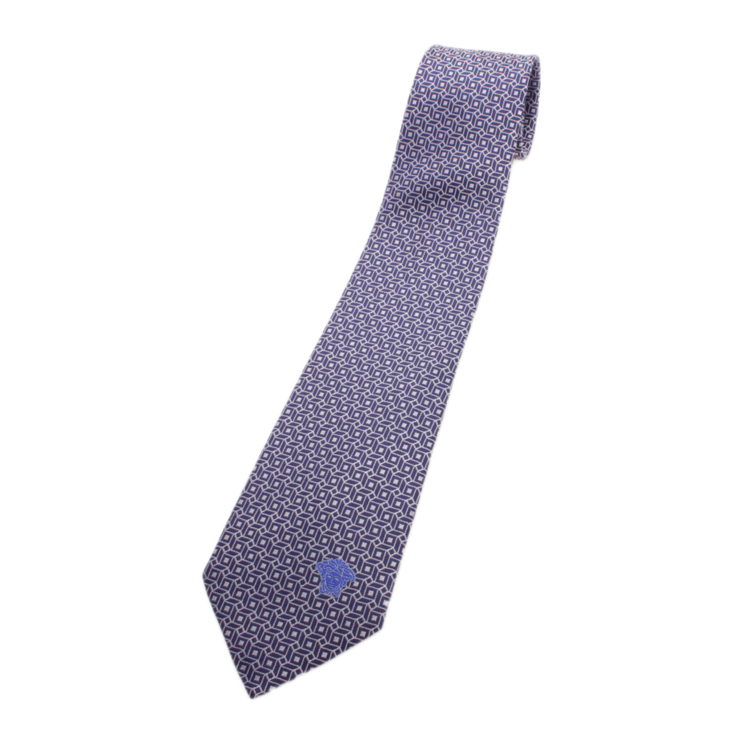 Cubed Tile Pattern Silk Tie // Blue + Grey