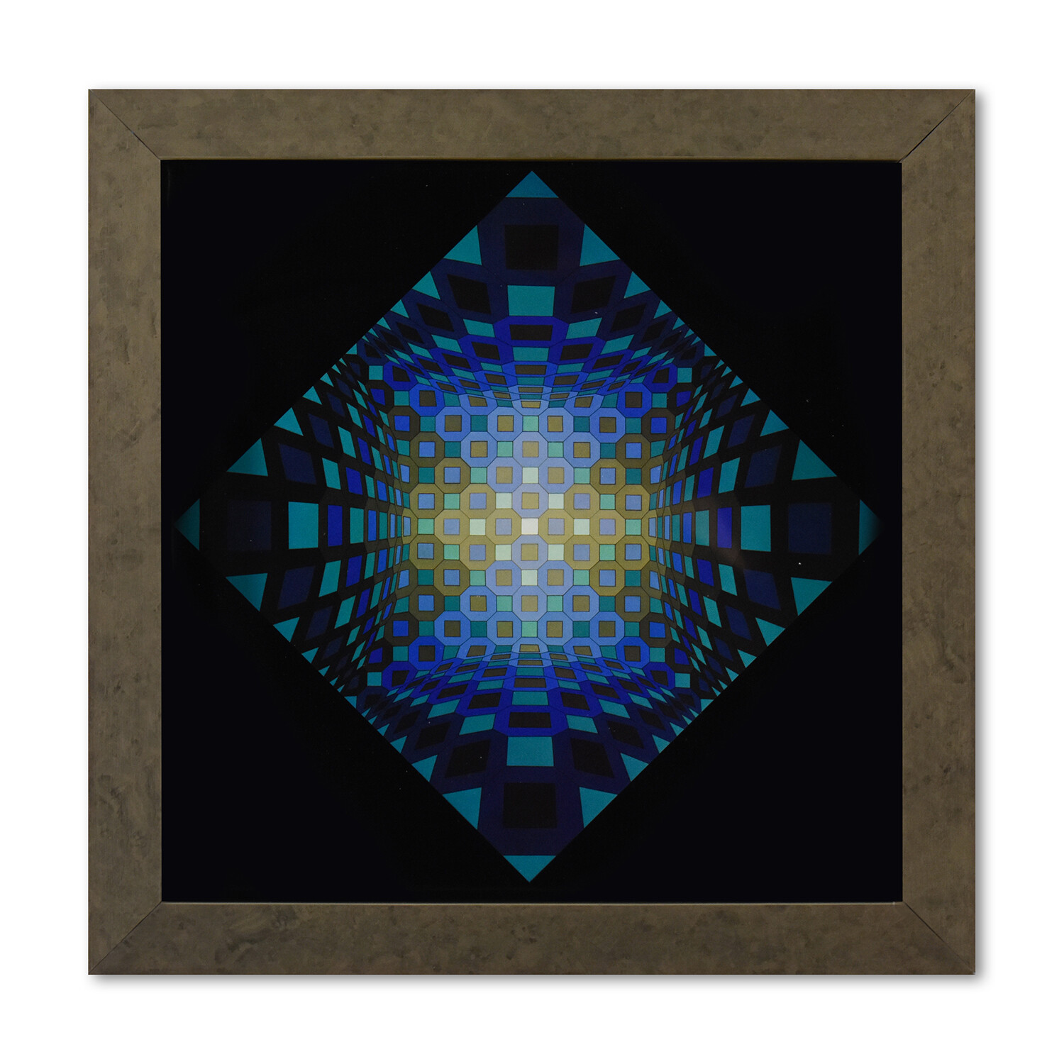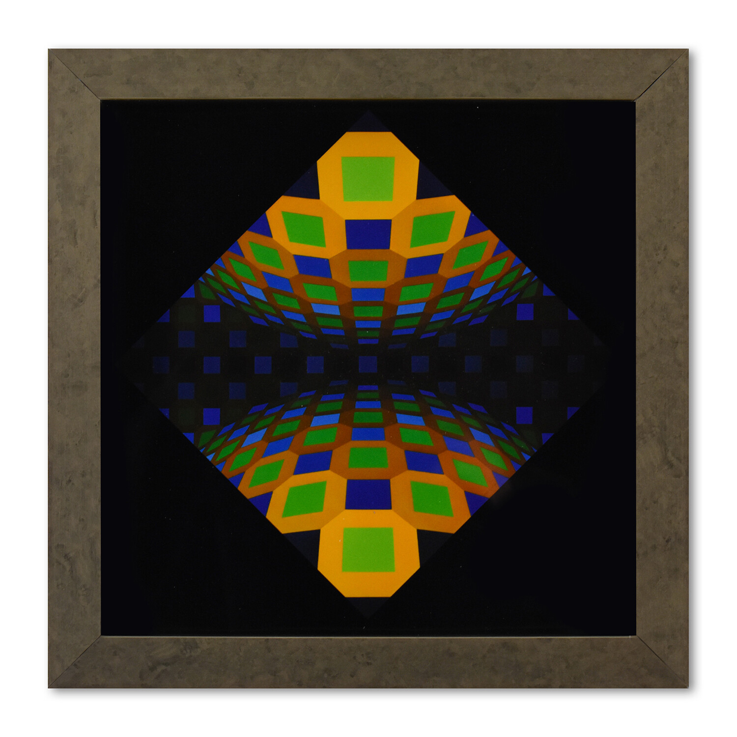 Victor Vasarely was a French-Hungarian artist credited as the grandfather and leader of the Op Art movement. Utilizing geometric shapes and colorful graphics, the artist created compelling illusions of spatial depth, as seen in his work Vega-Nor (1969). Vasarely’s method of painting borrowed from a range of influences, including Bauhaus design principles, Wassily Kandinsky, and Constructivism.