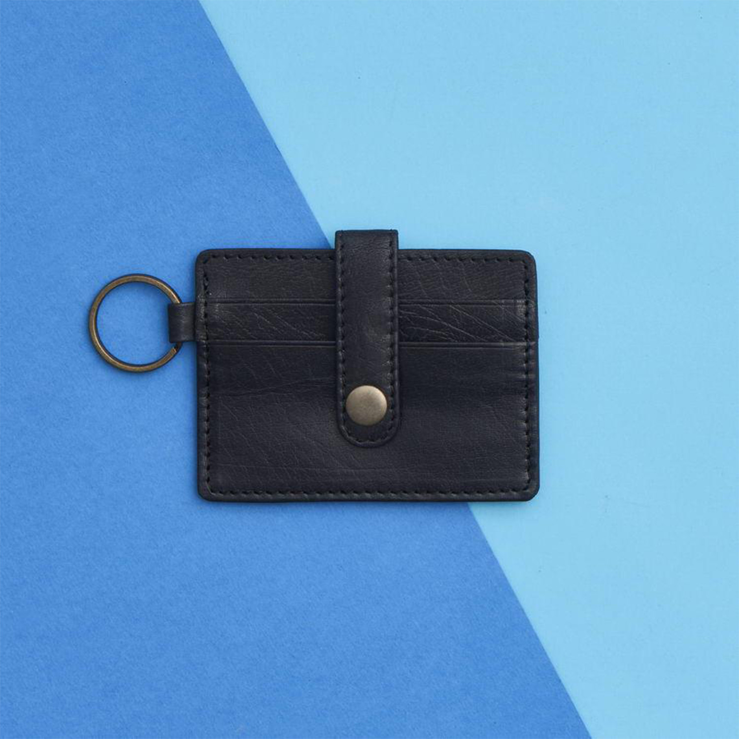 This leather cardholder key ring allows you to keep your cards safe in luxurious style and makes a perfect personalized present for someone special. It's handmade using hardwearing, distressed buffalo leather and a simple, functional design, which will keep your cards safe. You can also fold notes into it, making it an extremely slim-fit wallet.