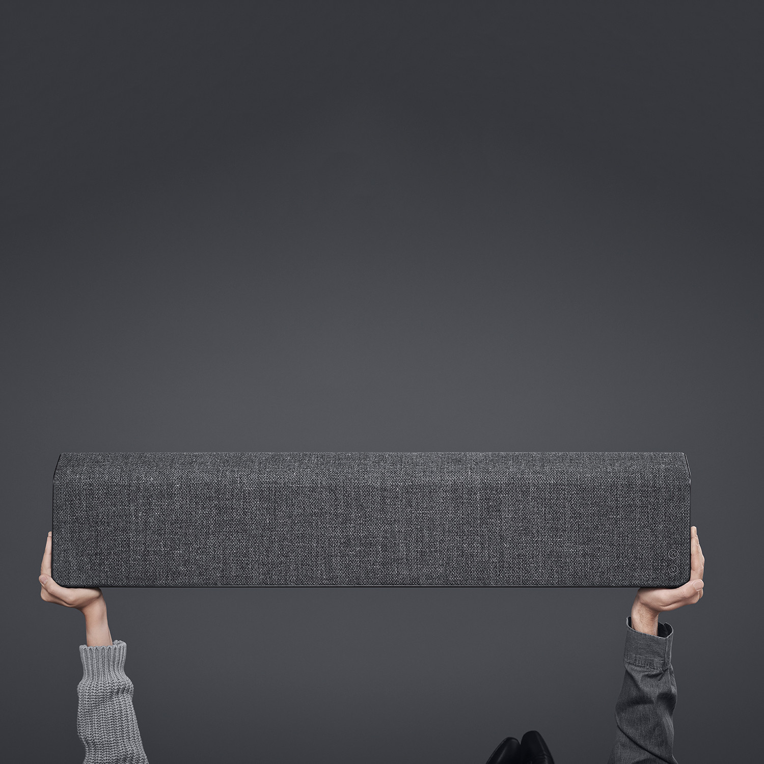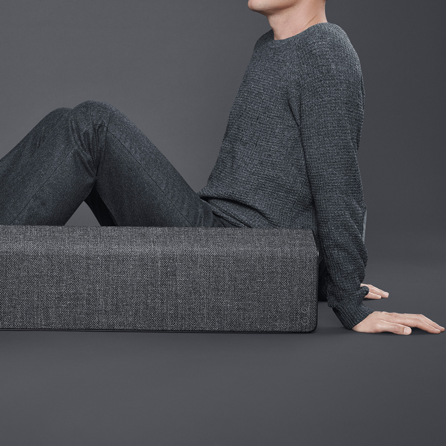 The warm, rough woven Kvadrat textile cover contrasts sharply against the cool, smooth aluminum frame, and a zinc cast remote control lets you control your music both wirelessly, and from a distance, so the party never has to stop.