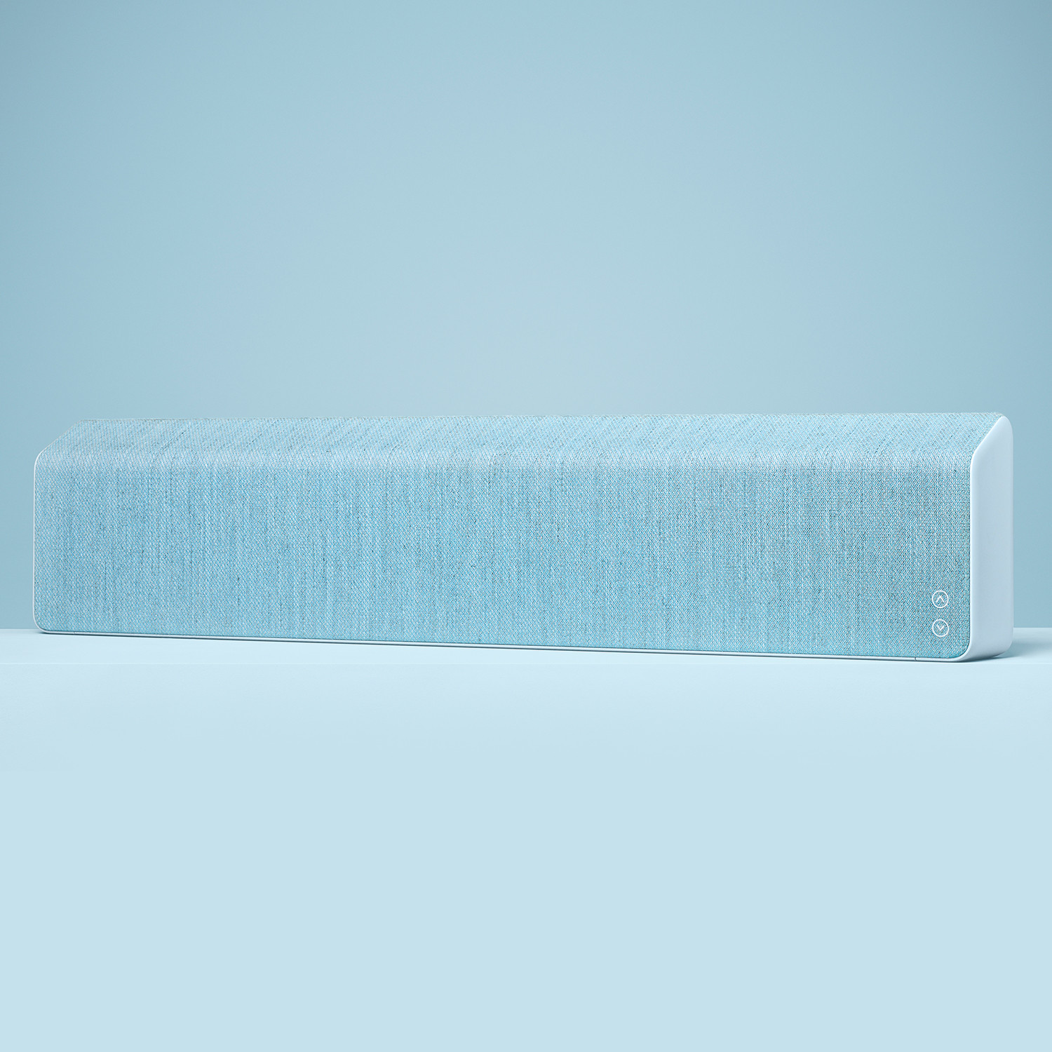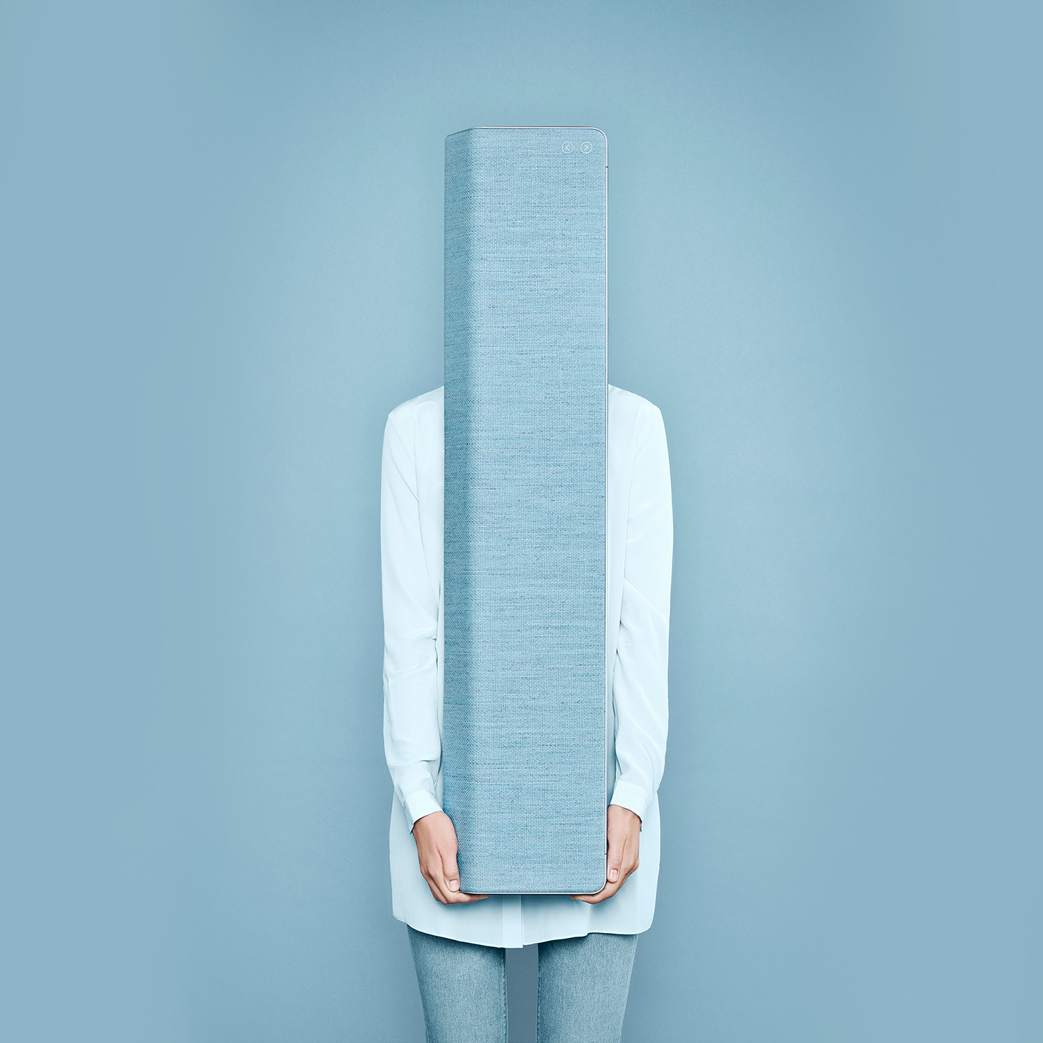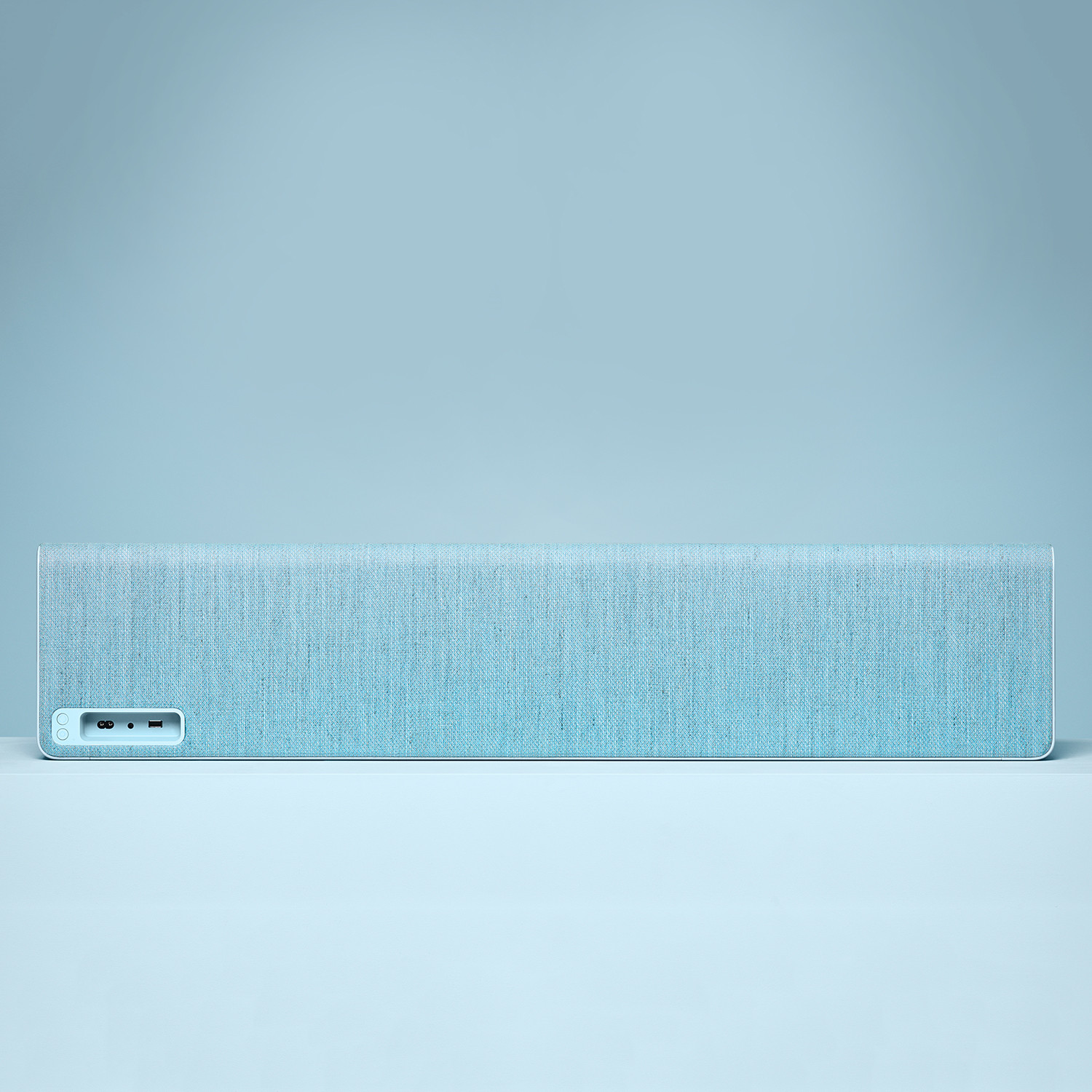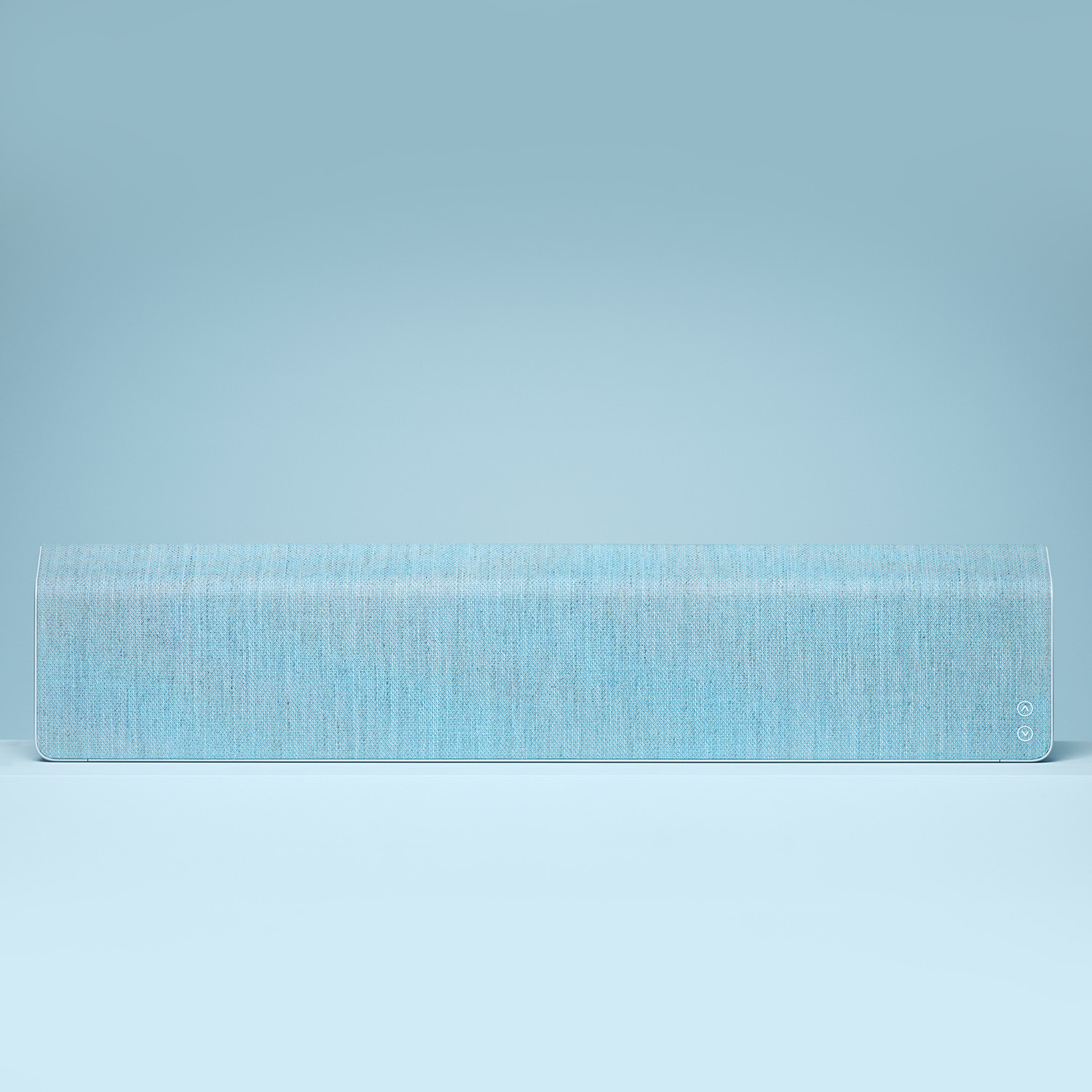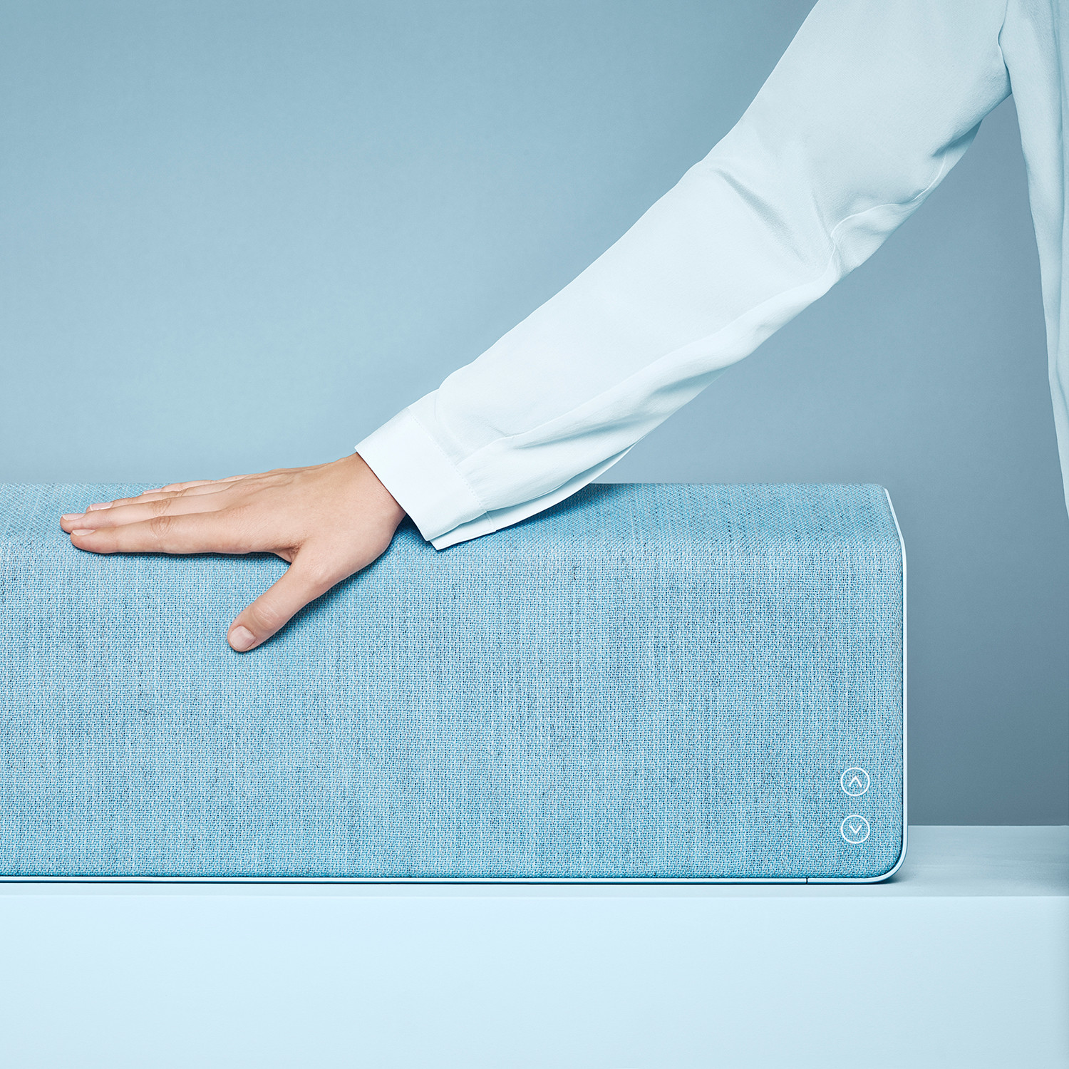 The warm, rough woven Kvadrat textile cover contrasts sharply against the cool, smooth aluminum frame, and a zinc cast remote control lets you control your music both wirelessly, and from a distance, so the party never has to stop.