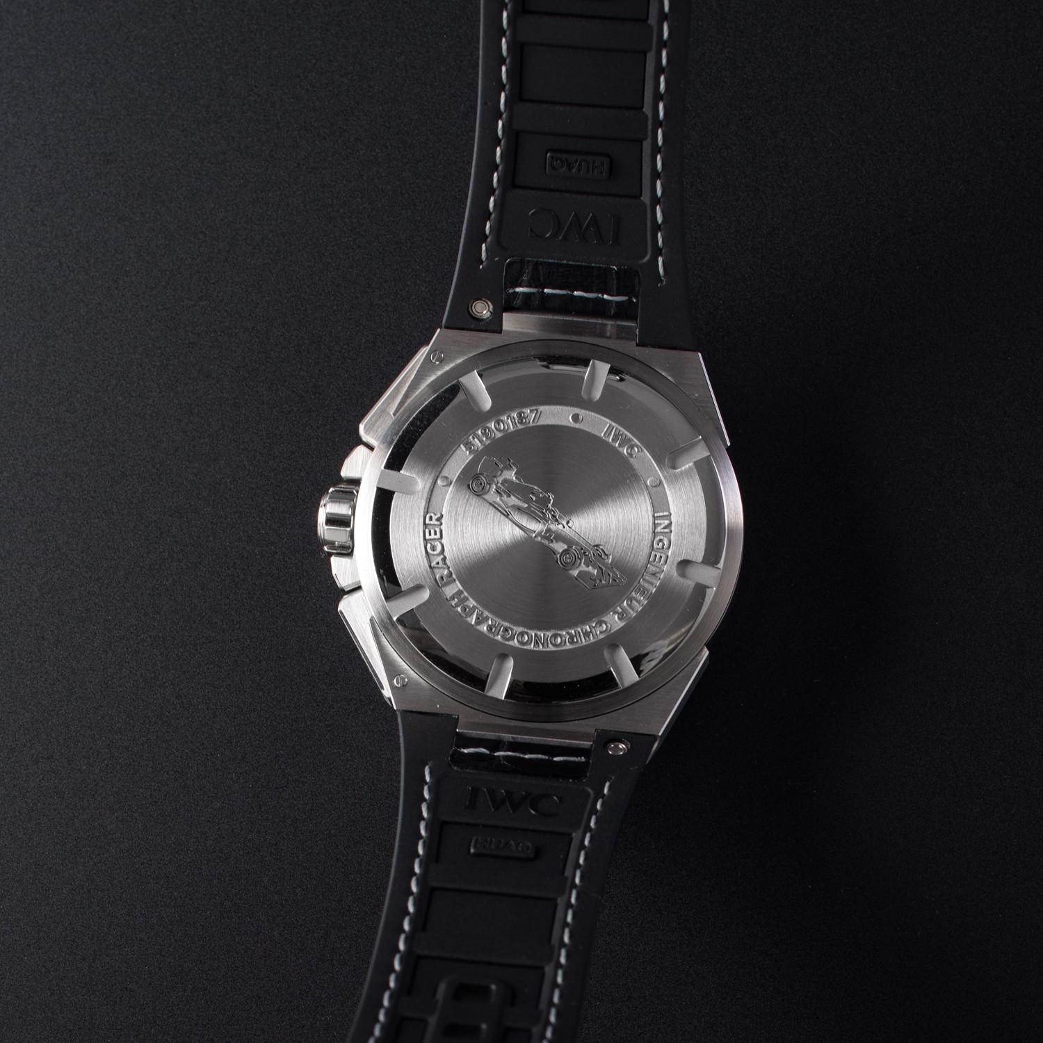 The Ingenieur Chronograph Racer permits recorded hours and minutes to be shown on a totalizer. With the help of the tachymeter scale, it is possible to read off the average speed achieved over a measured distance. Pressing the reset button brings the stopwatch hand back to zero and immediately starts another timing sequence (flyback function).
