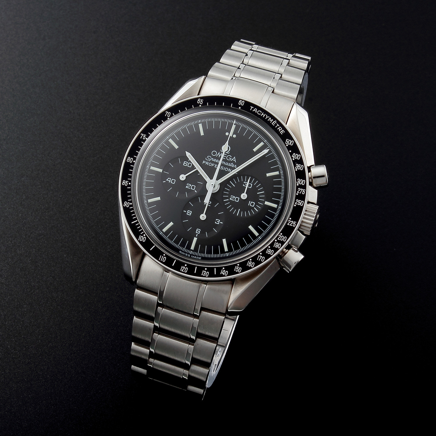 The Omega Professional Moon is one of the brand's most iconic timepieces. Having been a part of all six lunar missions, this legendary watch is an impressive representation of the brand’s adventurous pioneering spirit. This model features a black dial covered by a hesalite crystal and graced by a small seconds sub-dial, 30-minute recorder and 12-hour recorder along with a central chronograph hand. The black bezel, with its tachymetric scale, is mounted on a 42mm stainless steel case and presented on a matching bracelet. At the heart of this chronograph is OMEGA’s mechanical caliber 1861, the famous manual-winding movement that was worn on the Moon.