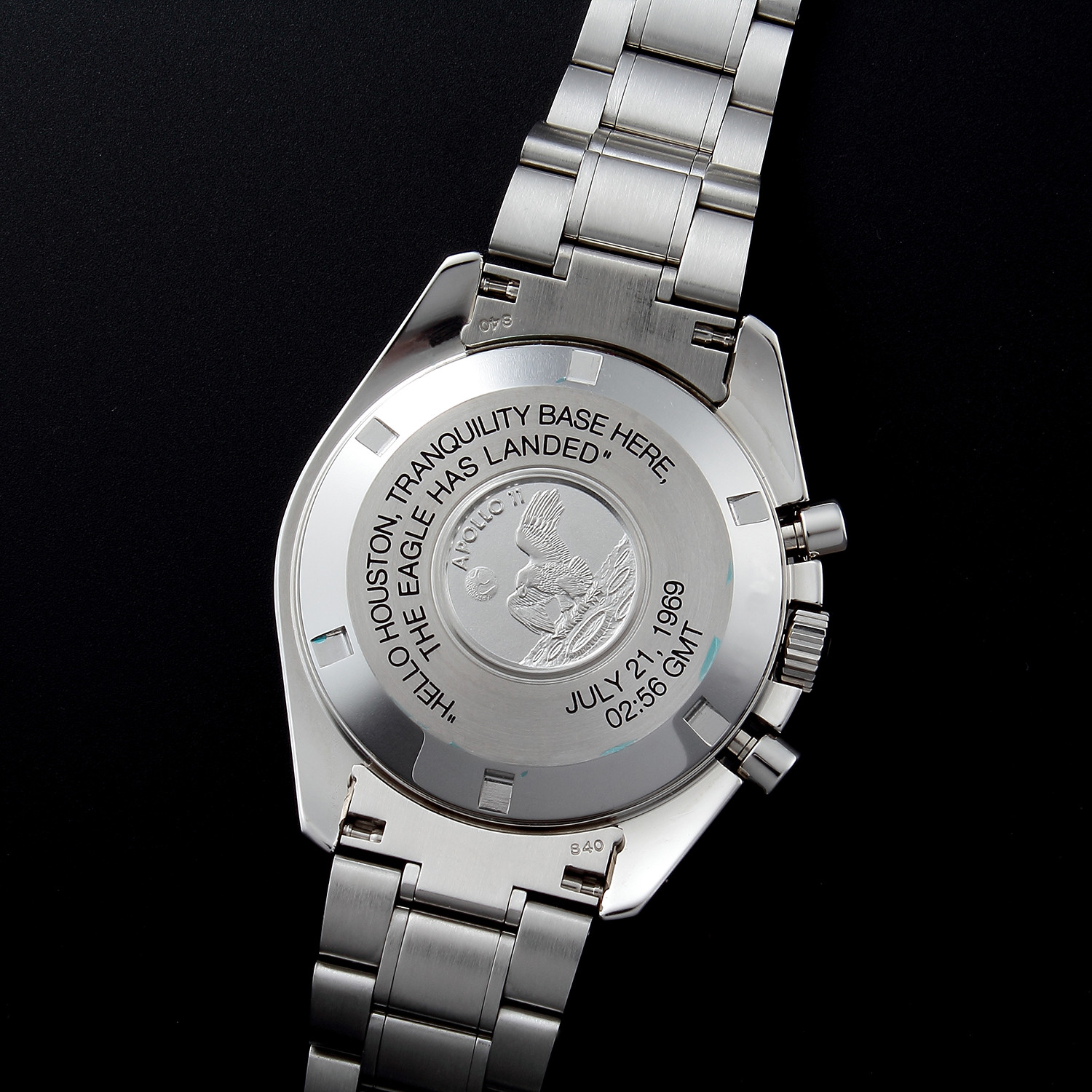 — Case Color: Silver. Case back engraved "HELLO HOUSTON TRANQUILITY BASE HERE. THE EAGLE HAS LANDED." JULY 21,1969 02:56 GMT