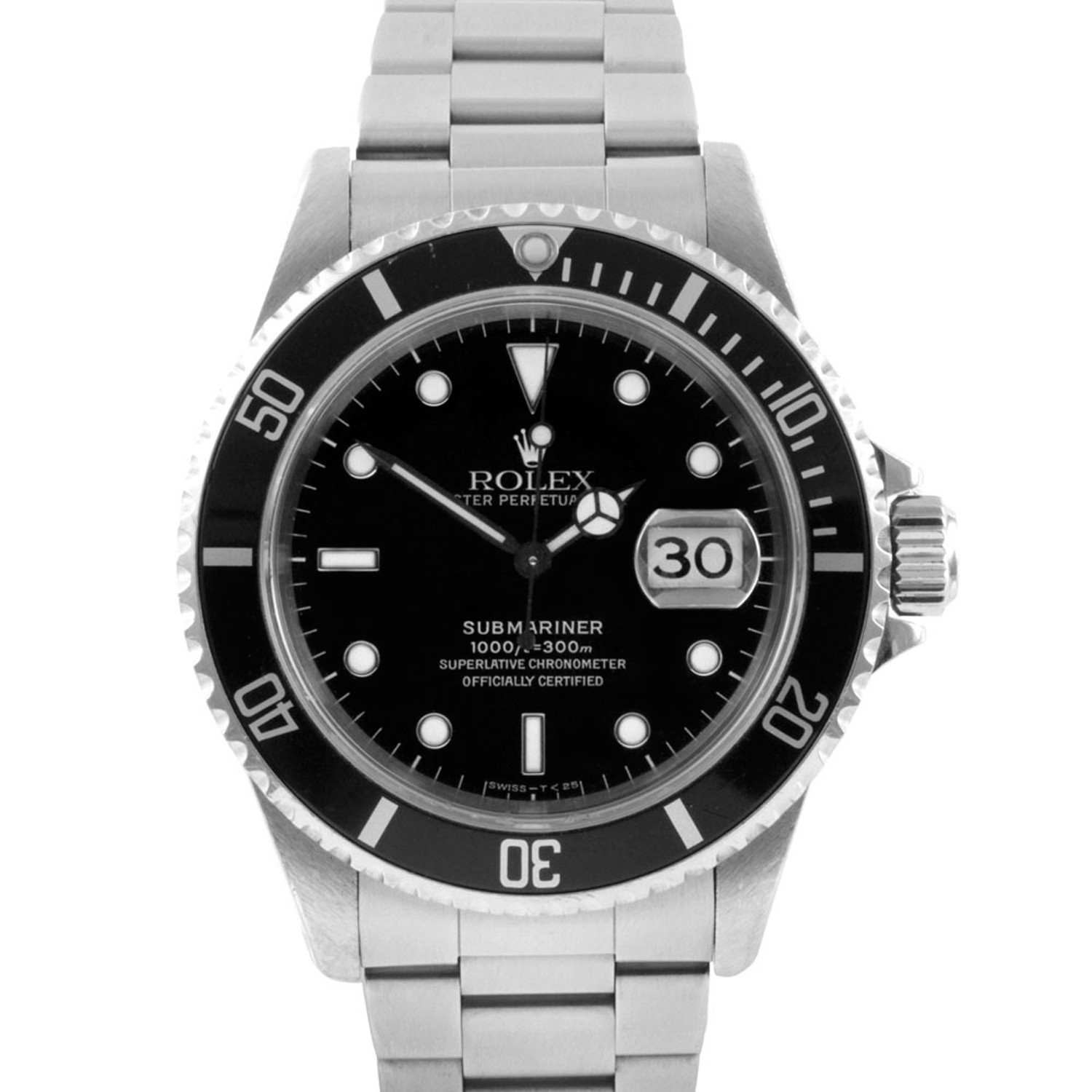 The Oyster Perpetual Submariner is the quintessential divers’ watch, and the benchmark in its genre. Introduced in 1953 during the pioneering era for scuba diving, it was the first watch to be water-resistant to 100 metres (330 feet). This iconic timepiece has since evolved with a series of patented Rolex technical innovations, guaranteeing its reliability and precision down to depths of 300 metres (1,000 feet). This watch's rugged elegance features a sleek steel design with a brilliant black dial and bezel. This watch is a classic you'll cherish for years to come.
