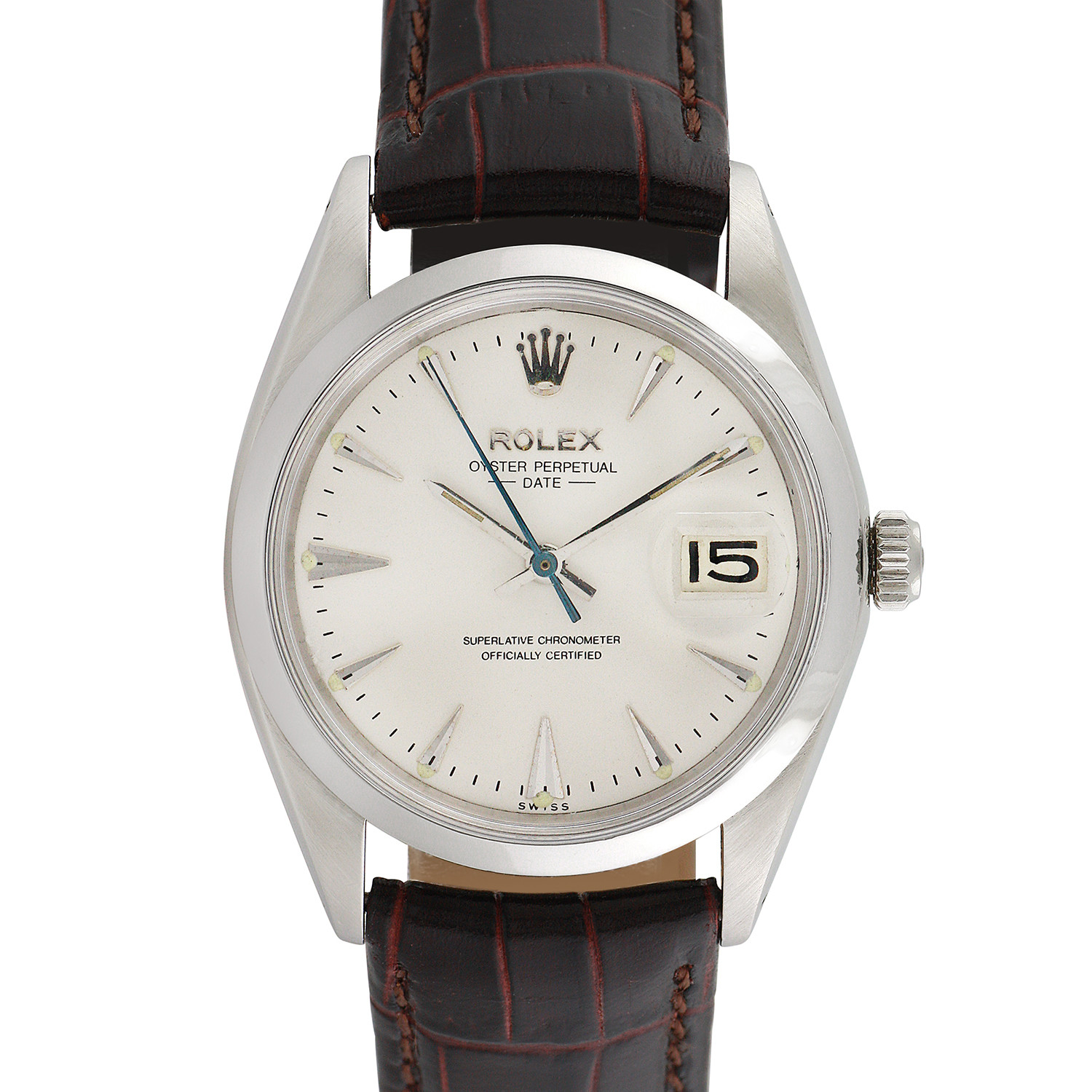 This Rolex Date is an elusive older model from Rolex, based on a series of watches that began production in the late 1950's, featuring a date function. This model is made of stainless steel, as is traditional for the Date series, and also features a Rolex self-winding Automatic movement.
