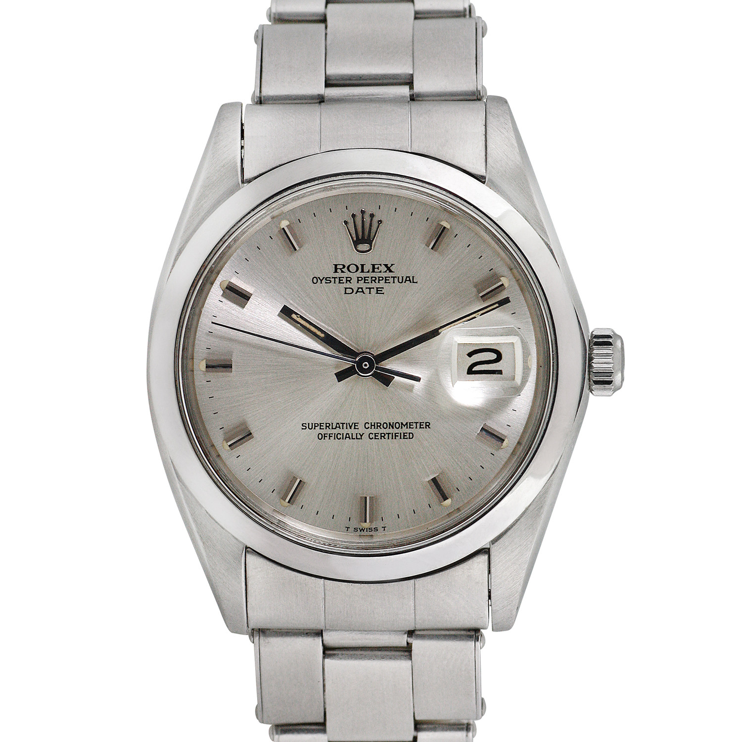 This Rolex Date is an elusive older model from Rolex, based on a series of watches that began production in the late 1950's, featuring a date function. This model is made of stainless steel, as is traditional for the Date series, and also features a Rolex self-winding Automatic movement.