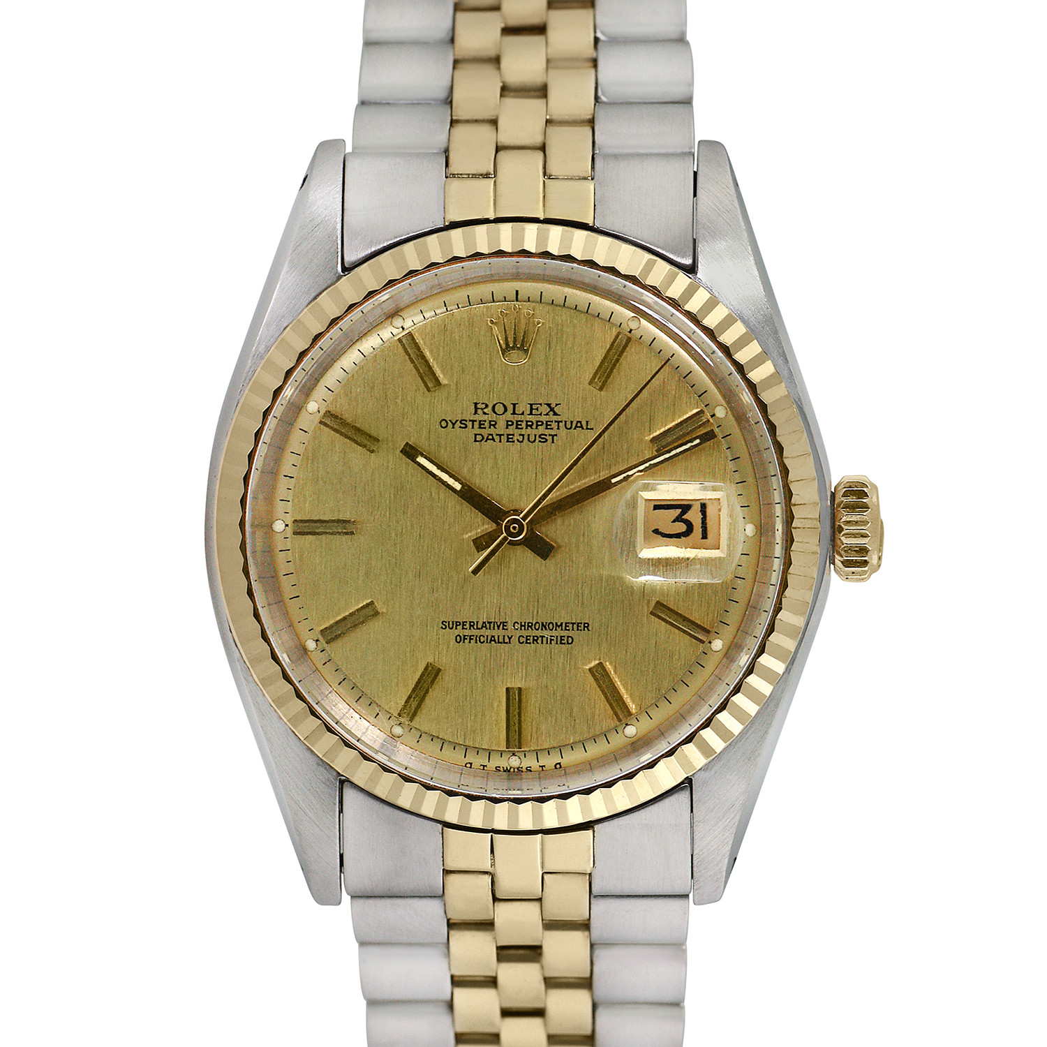 This Rolex Men's Datejust Two-Tone Watch is an elusive older model from the 1970's which is from the Datejust series. The Datejust series is an old and honored watch series, which dates back to 1945. The first self-winding wrist chronometer to indicate the date in a window on the dial, this Rolex classic is the pillar of the Oyster collection and a link to living history.
