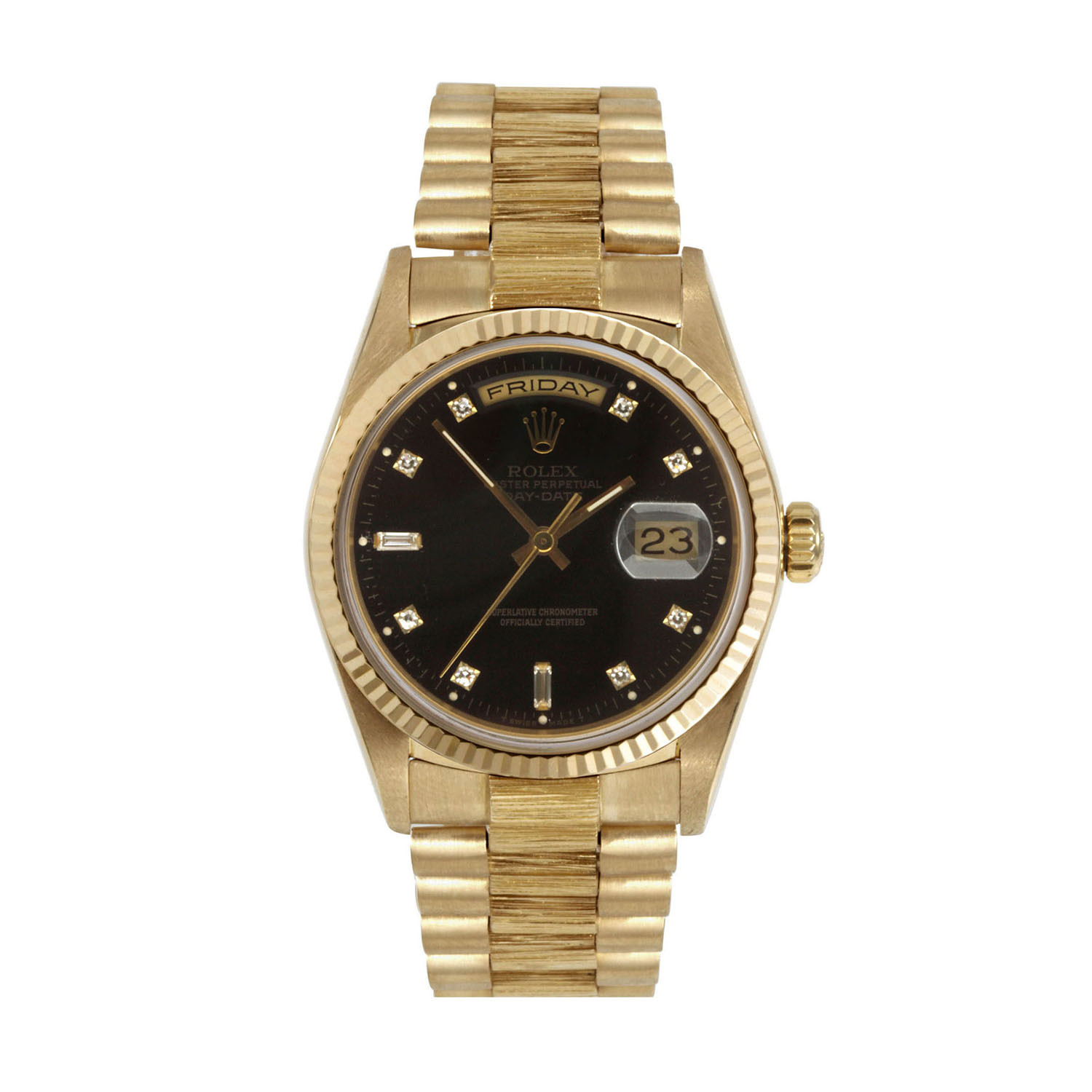 The Rolex Day Date is perhaps the most notable watch conceived and produced by Rolex Company. First named the Rolex Day-Date, this model came to be called the “President” after President Eisenhower began wearing one during his presidency. Featuring automatic winding technology, and a flawless design, the Day Date is a definite favorite for entrepreneurs, entertainers, and world dignitaries.