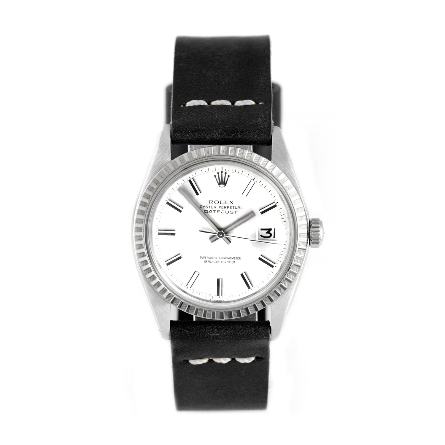 Rolex Datejust // Black Strap // Refinished White Index // c. 1970s