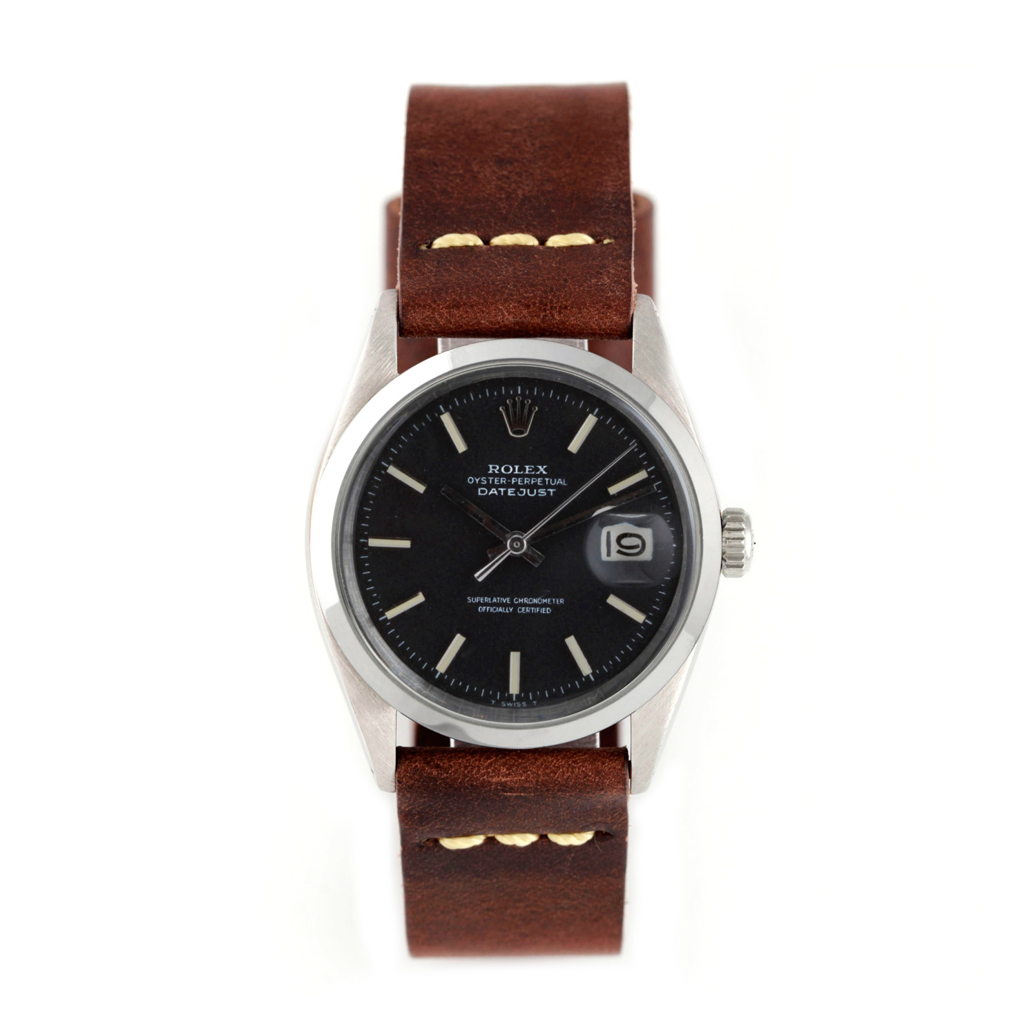 Rolex Datejust // Brown Strap // Refinished Black Index // c. 1970s