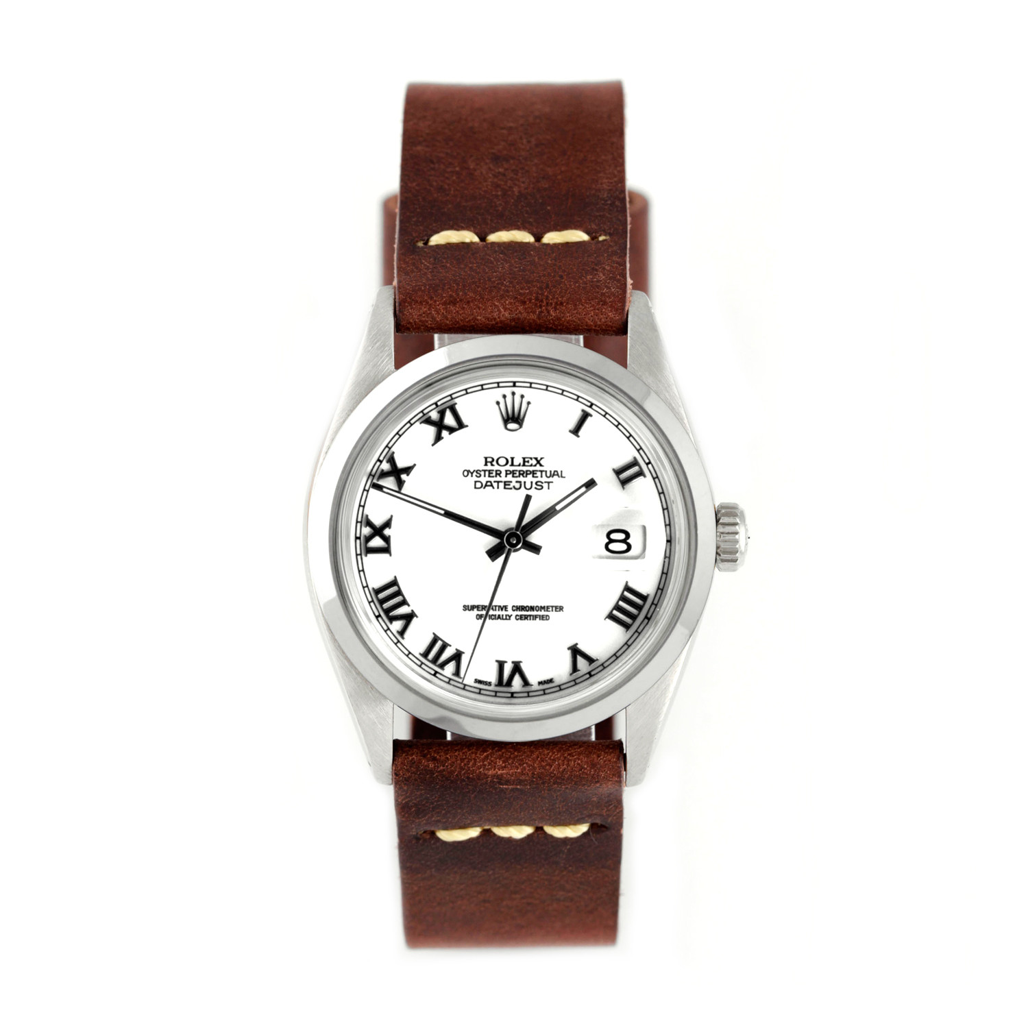 — Rolex Stainless Steel Men's 36mm Datejust with White Roman dial and Generic Brown Leather strap