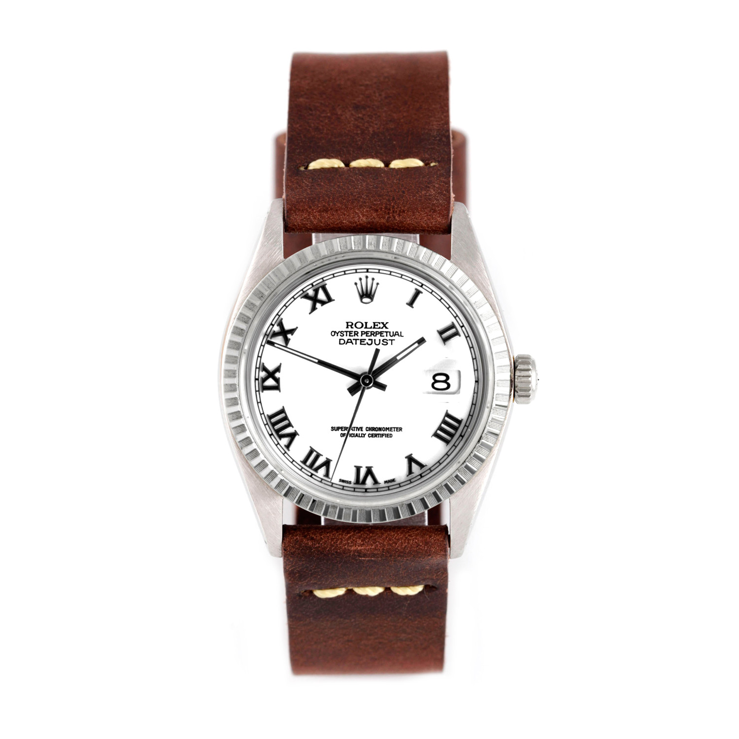 — Rolex Stainless Steel Men's 36mm Datejust with White Roman dial and Generic Brown Leather strap