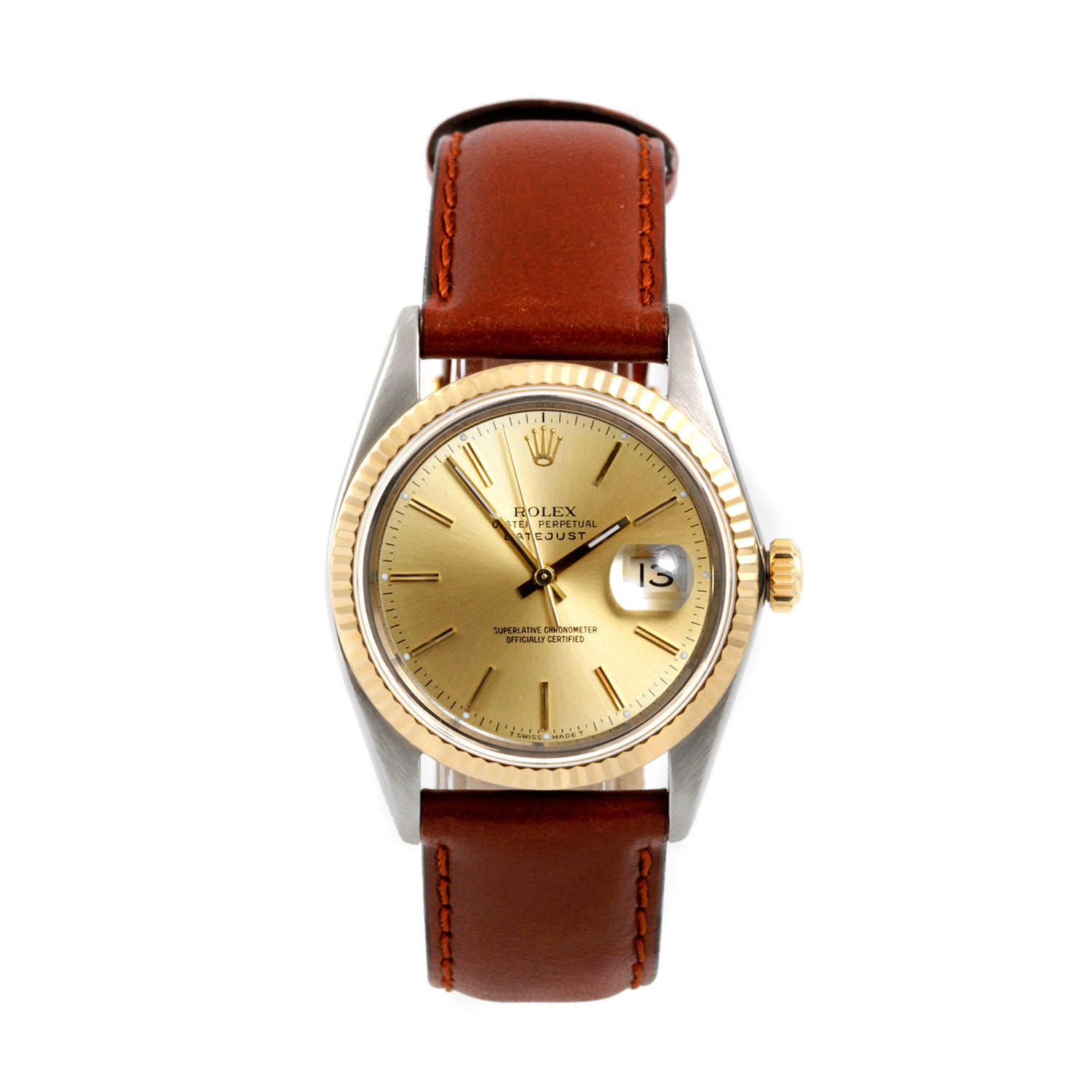 — Rolex Men's Two Tone Datejust with Champagne Index dial and Generic Brown Leather strap