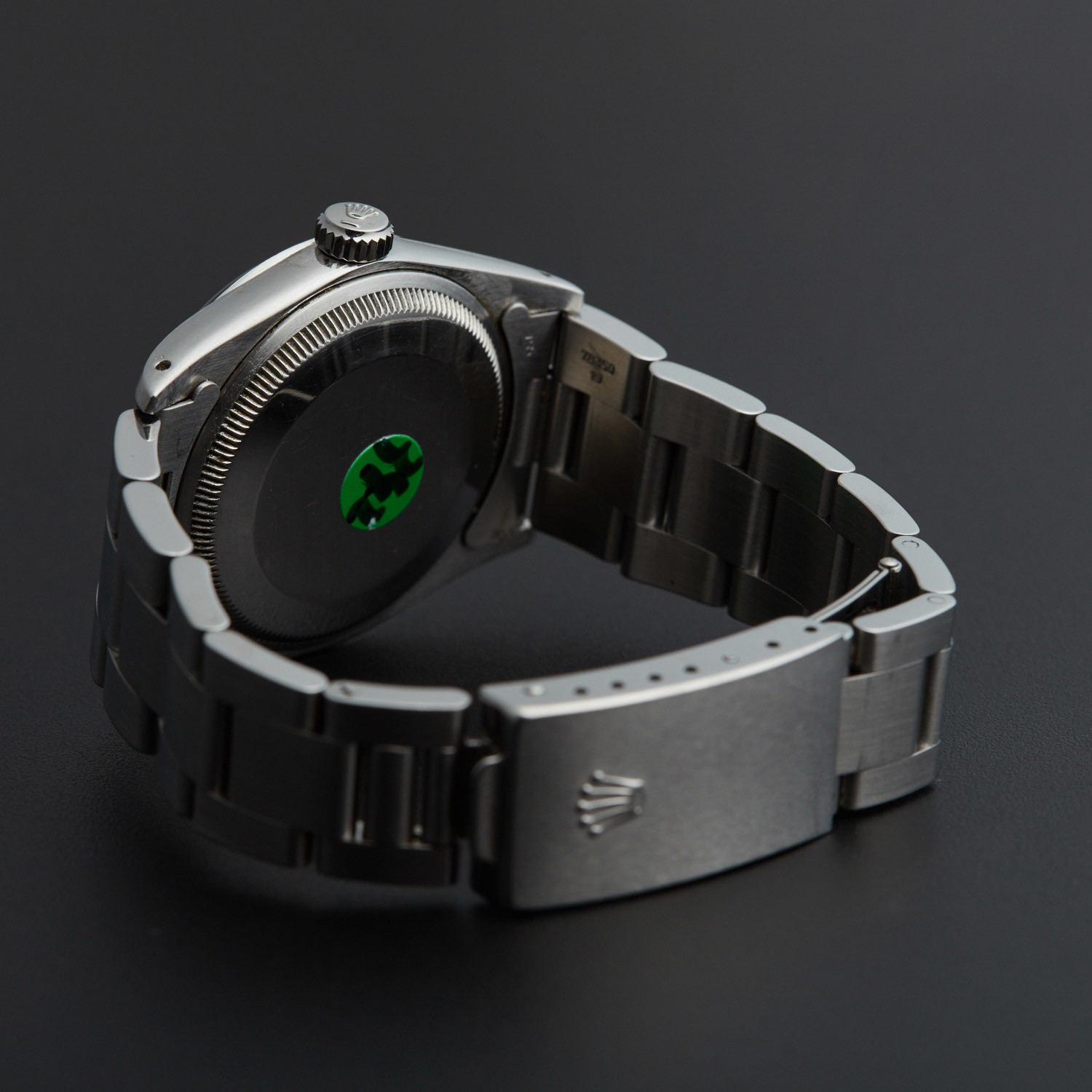 This Rolex Date is an elusive older model from Rolex, based on a series of watches that began production in the late 1950's, featuring a date function. This model is made of stainless steel, and also features a Rolex self-winding Automatic movement.