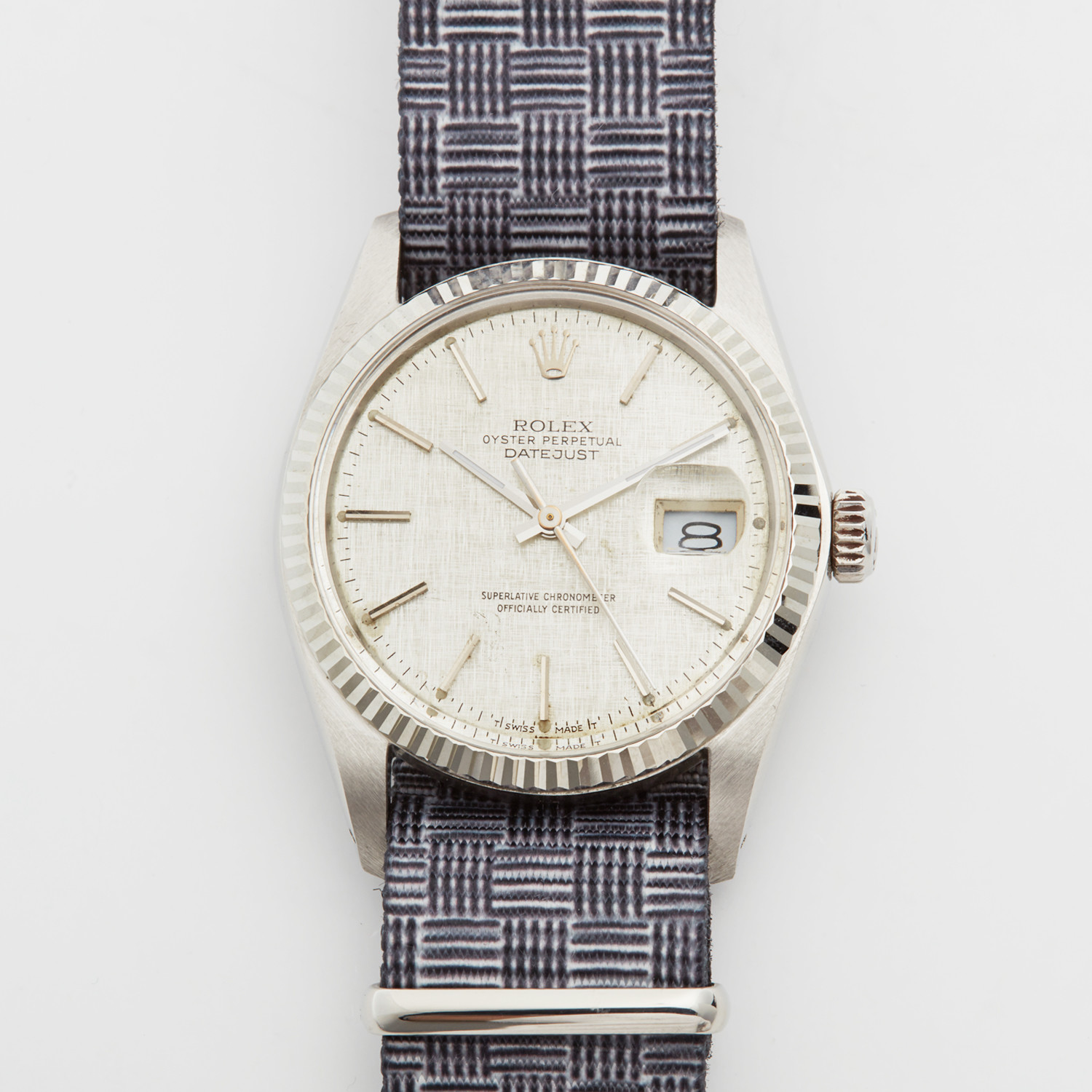 In 1945, at the dawn of a new era of prosperity, Rolex launched the first Datejust. The inaugural model with its waterproofness, streamlined elegance and date aperture on the face of the watch, was a timepiece ahead of its time. This vintage Datejust is a stunning tribute to the history of this memorable line. With stainless steel construction, this Rolex is truly a standout piece for your collection.