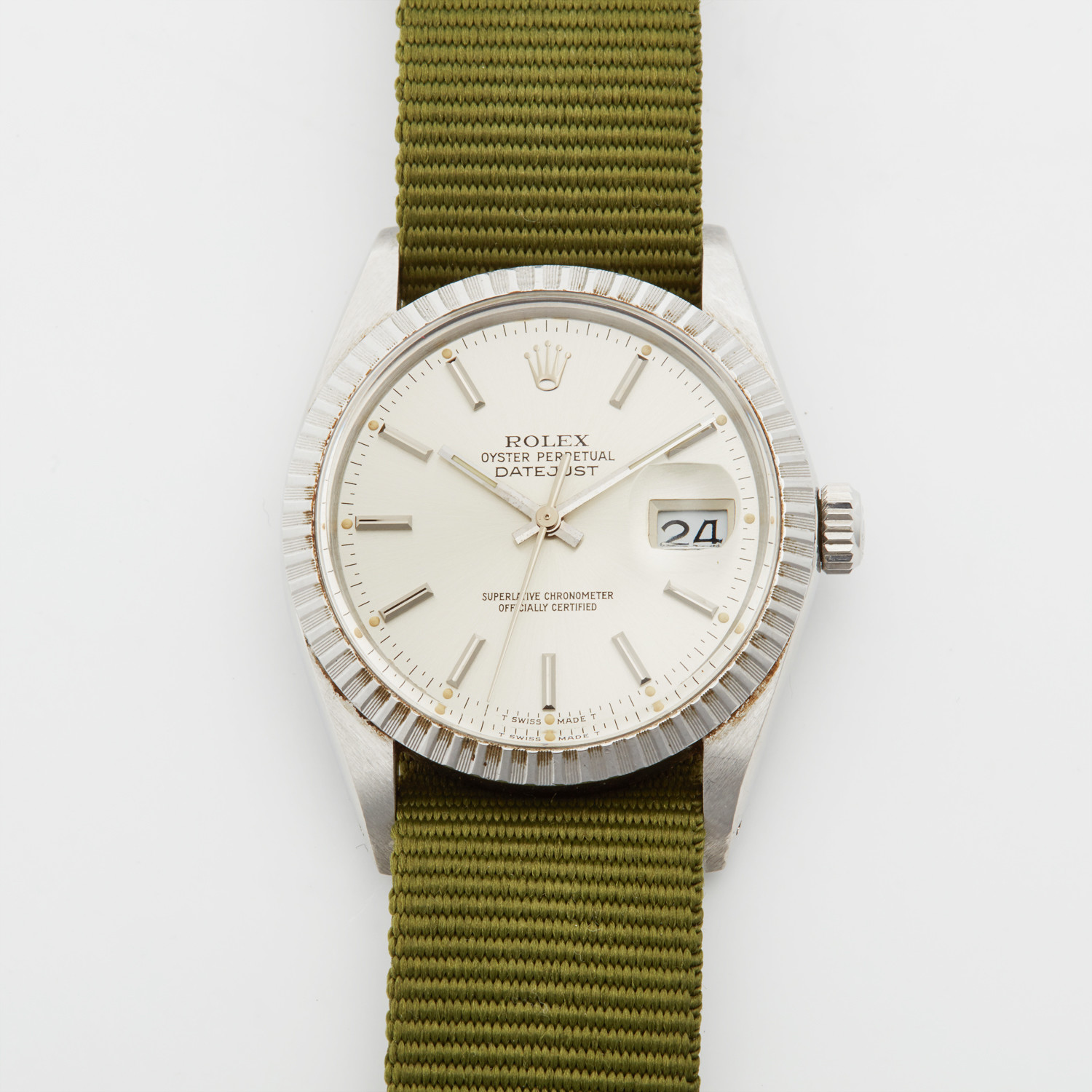 In 1945, at the dawn of a new era of prosperity, Rolex launched the first Datejust. The inaugural model with its waterproofness, streamlined elegance and date aperture on the face of the watch, was a timepiece ahead of its time. This vintage Datejust is a stunning tribute to the history of this memorable line. With stainless steel construction, this Rolex is truly a standout piece for your collection.