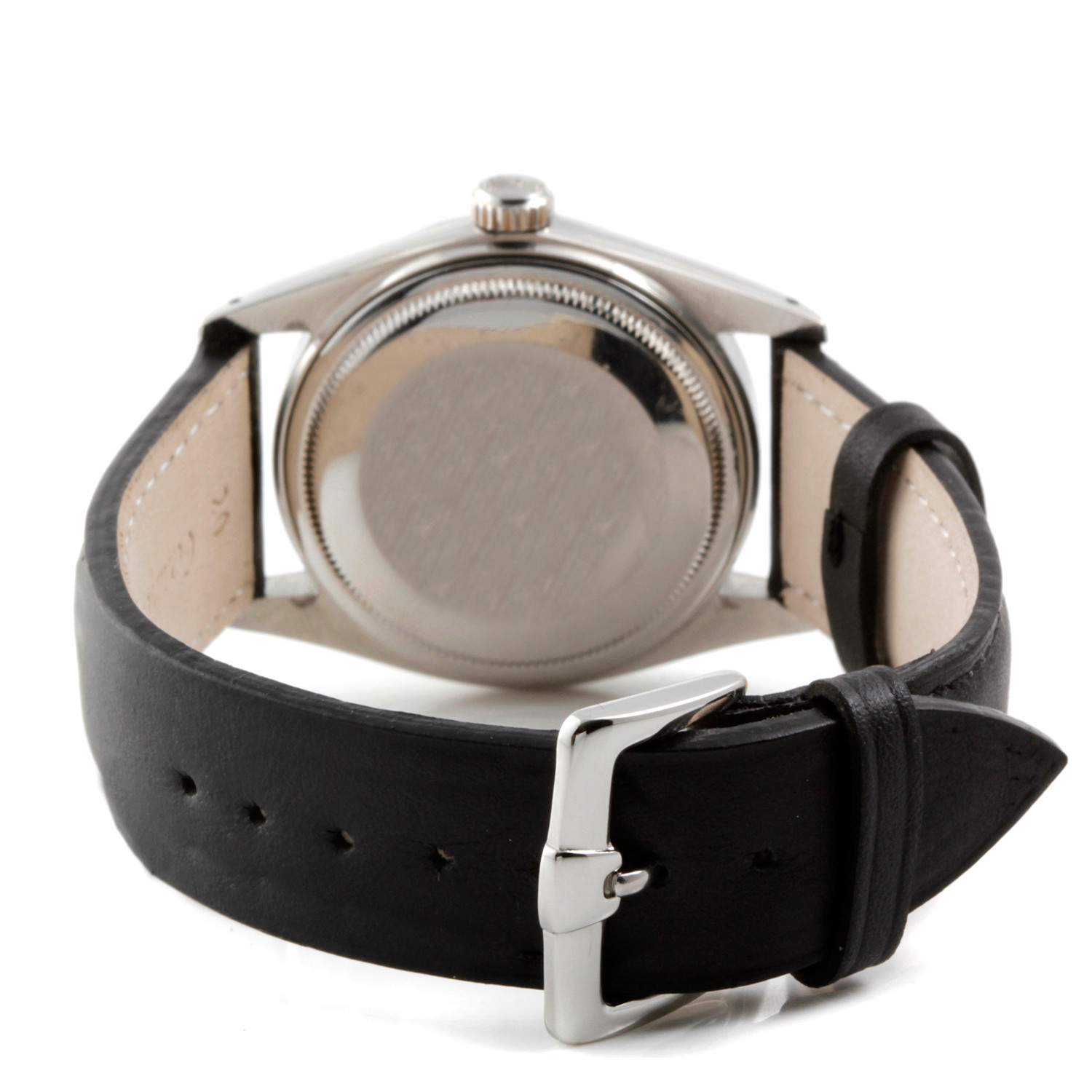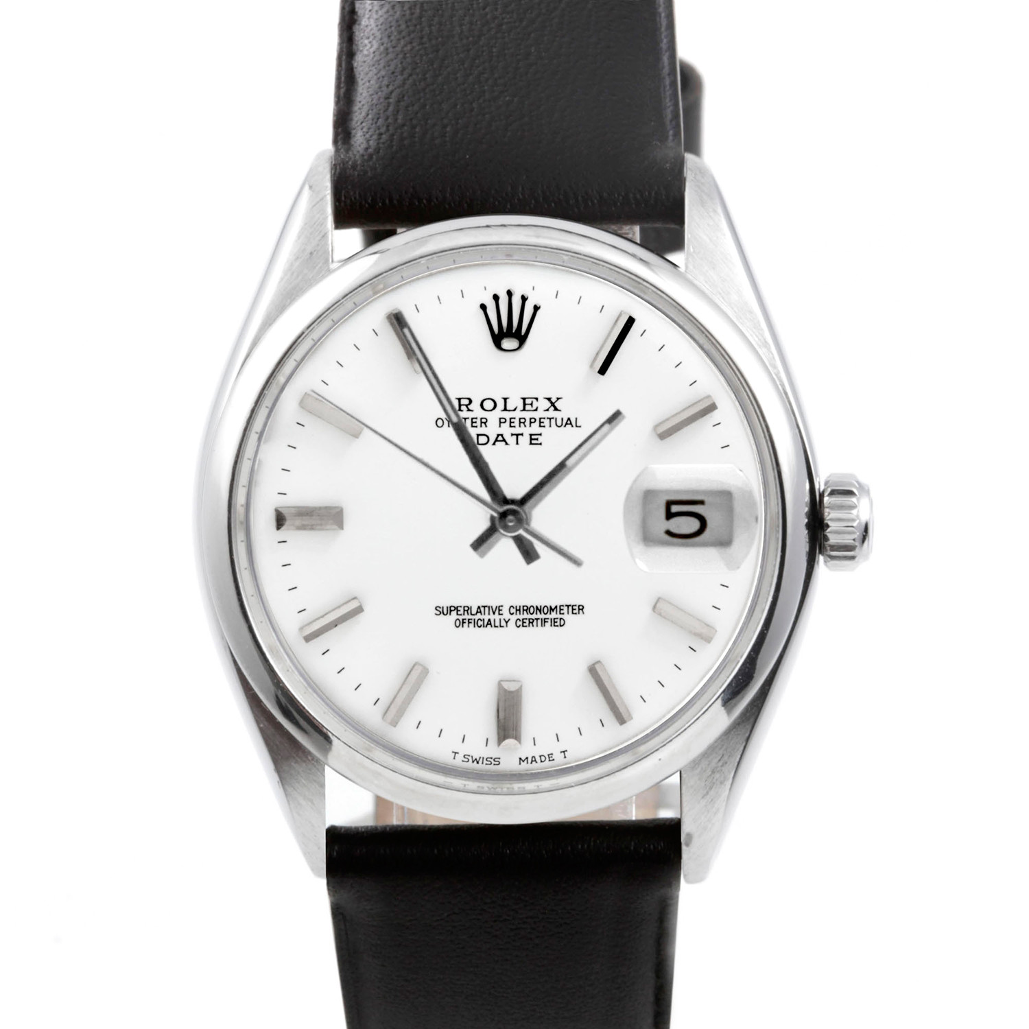 This Rolex Date is an elusive older model from Rolex, based on a series of watches that began production in the late 1950's, featuring a date function. This model is made of stainless steel, as is traditional for the Date series, and also features a Rolex self-winding Automatic movement.
