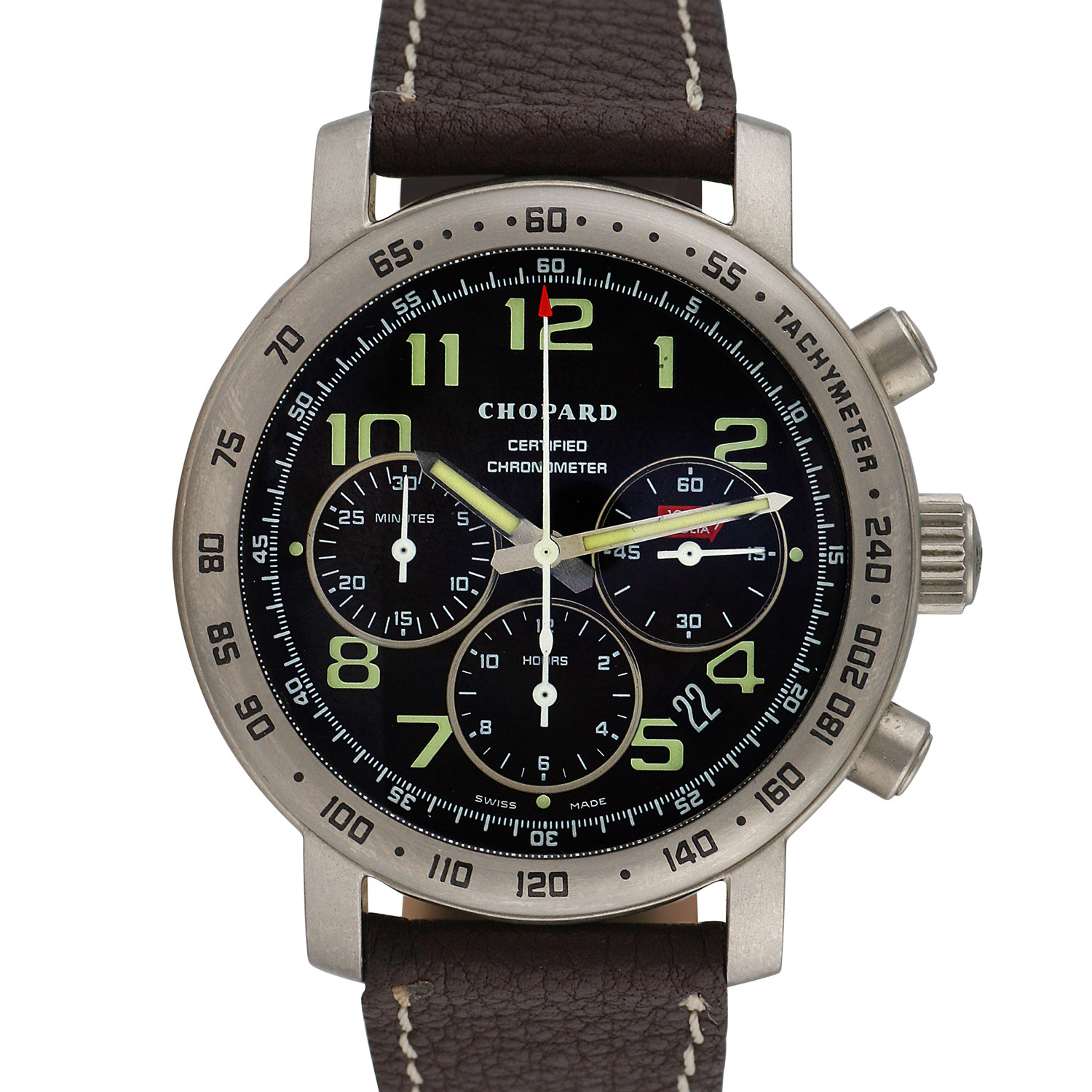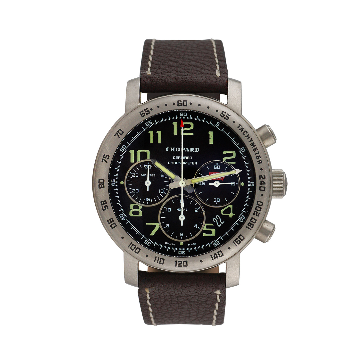 Wrap your wrist in a premium timepiece by the Swiss watchmasters at Chopard. Since 1860, they have led the way in perfecting watches and adapting them for the modern man. This Chopard Certified Chronometer Mille Miglia features a beautiful look enhanced by its titanium case.