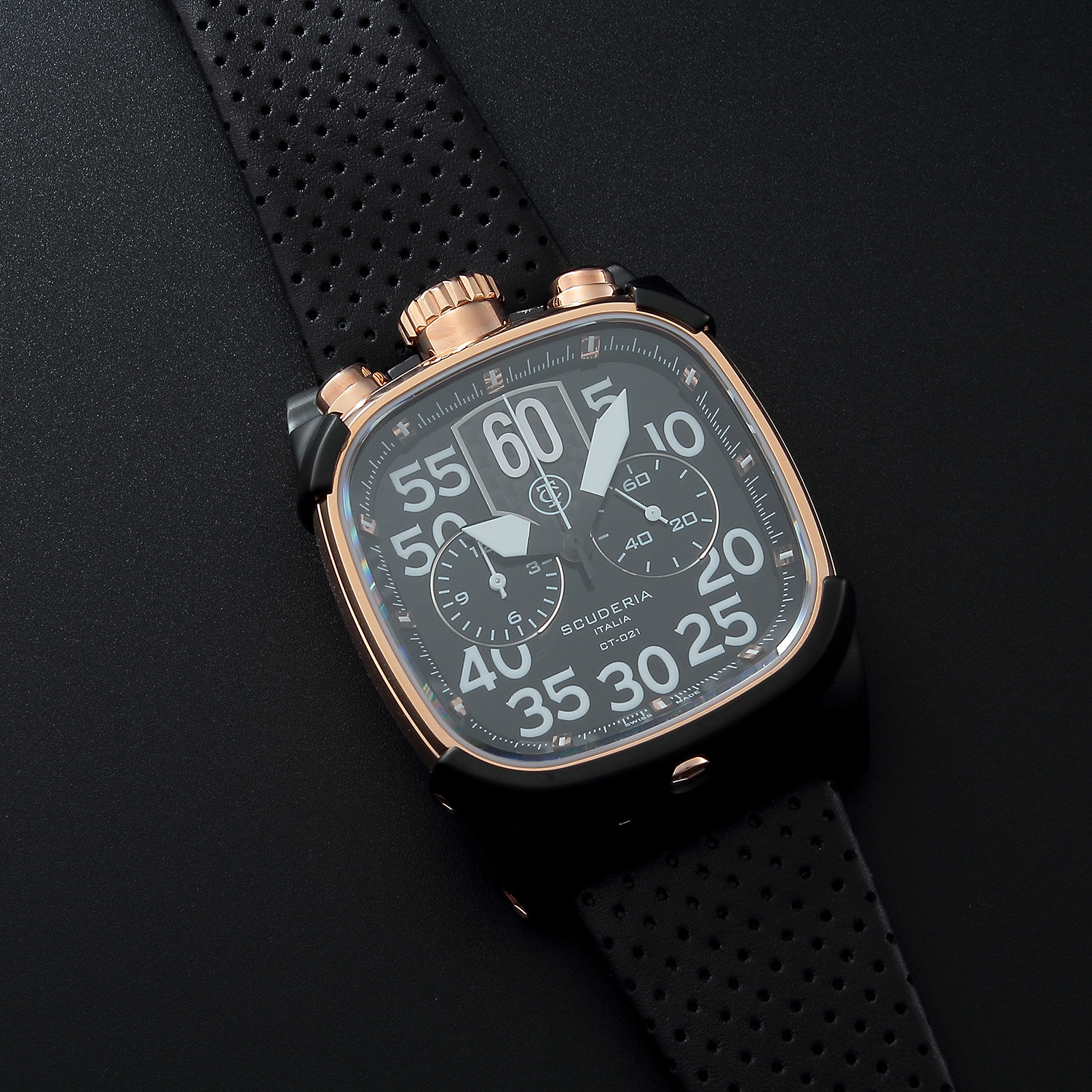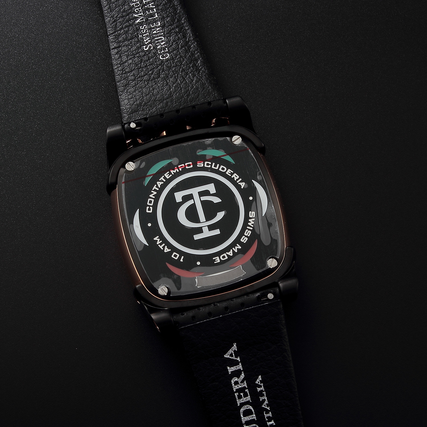 The Scrambler Collection presents a major breakthrough for CT Scuderia in introducing for the first time to the brand, a square shaped case design. The new collection takes its name from the type of off-road motorcycles that are used in one of the most strenuous types of auto races, the motocross race. The four piece case construction lends a pared-down, durable look and has Lumi Bright Night Vision numerals. All pieces in the collection come with a 12 hour quartz movement with chronograph functionality; an essential element for any racing watch. The Scrambler Collection brings together for the first time the natural elegance and classicism of a square case design with the rugged influence of motorcycles and café racing culture. The unique juncture where Italian sartorial heritage and pure moto influence meet is where you'll find the fine timepieces of CT Scuderia.