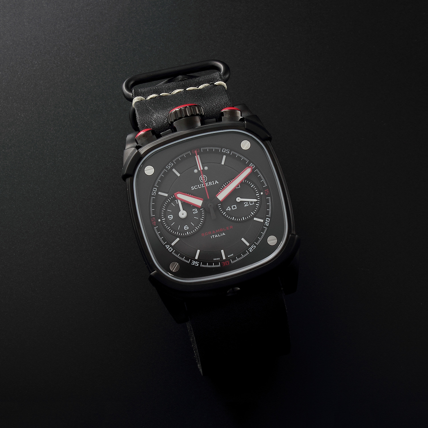 The Scrambler Collection presents a major breakthrough for CT Scuderia in introducing for the first time to the brand, a square shaped case design. The new collection takes its name from the type of off-road motorcycles that are used in one of the most strenuous types of auto races, the motocross race. The four piece case construction lends a pared-down, durable look and has Lumi Bright Night Vision numerals. All pieces in the collection come with a 12 hour quartz movement with chronograph functionality; an essential element for any racing watch. The Scrambler Collection brings together for the first time the natural elegance and classicism of a square case design with the rugged influence of motorcycles and café racing culture. The unique juncture where Italian sartorial heritage and pure moto influence meet is where you'll find the fine timepieces of CT Scuderia.