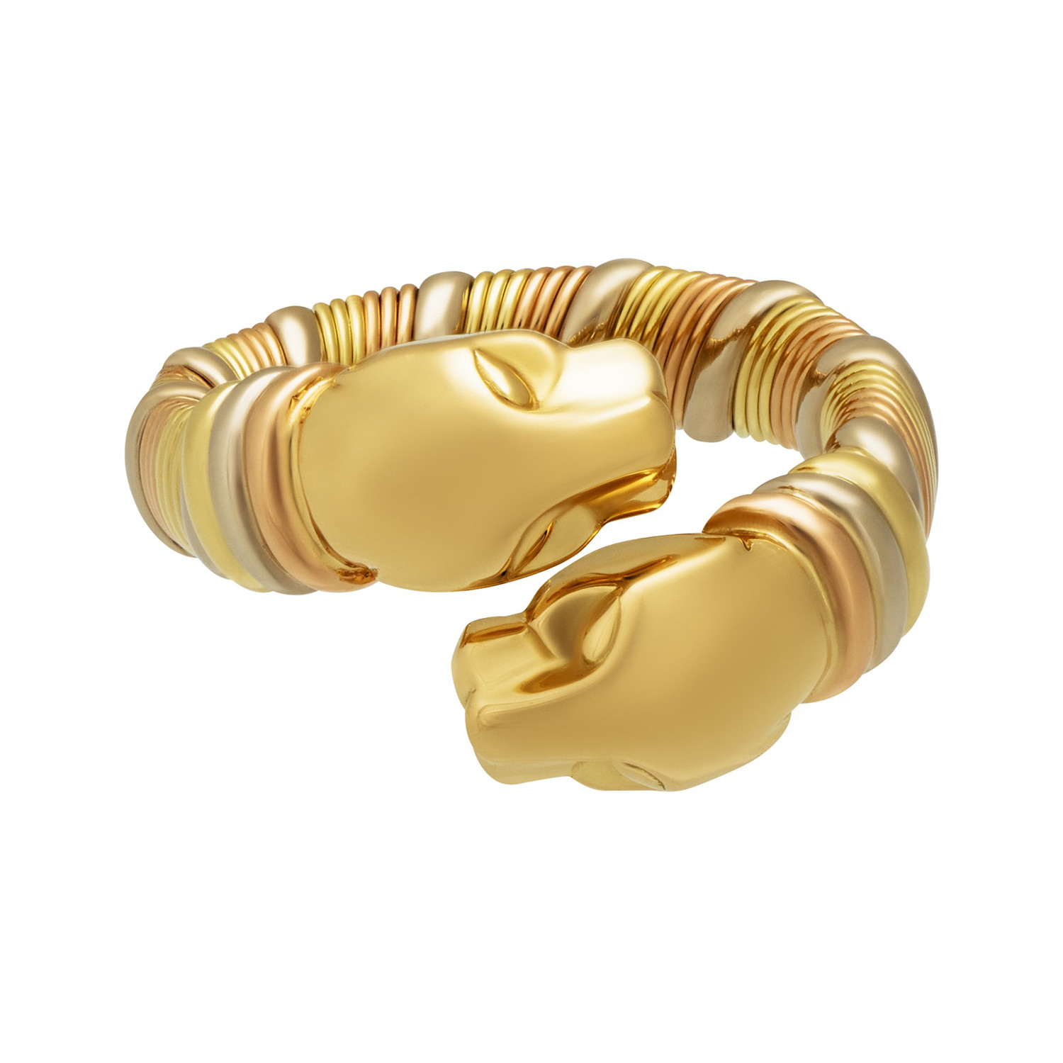 Vintage Cartier 18k Yellow Gold + 18k White Gold + 18k Rose Gold Double Panther Head Ring // Ring Size: 4