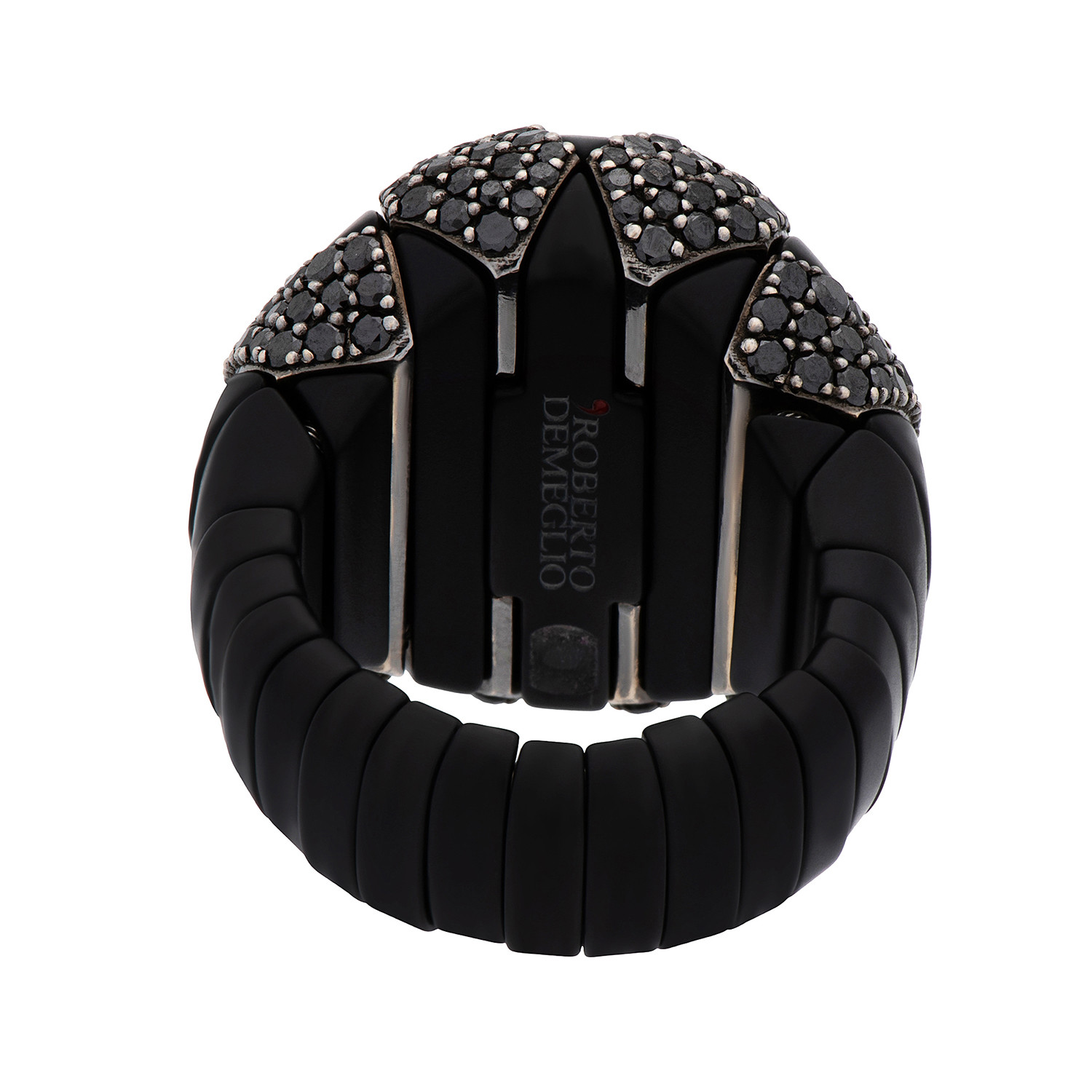 Vintage Roberto De Meglio 18k White Gold Black Ceramic and Black Diamond Ring // Ring Size: 6.5