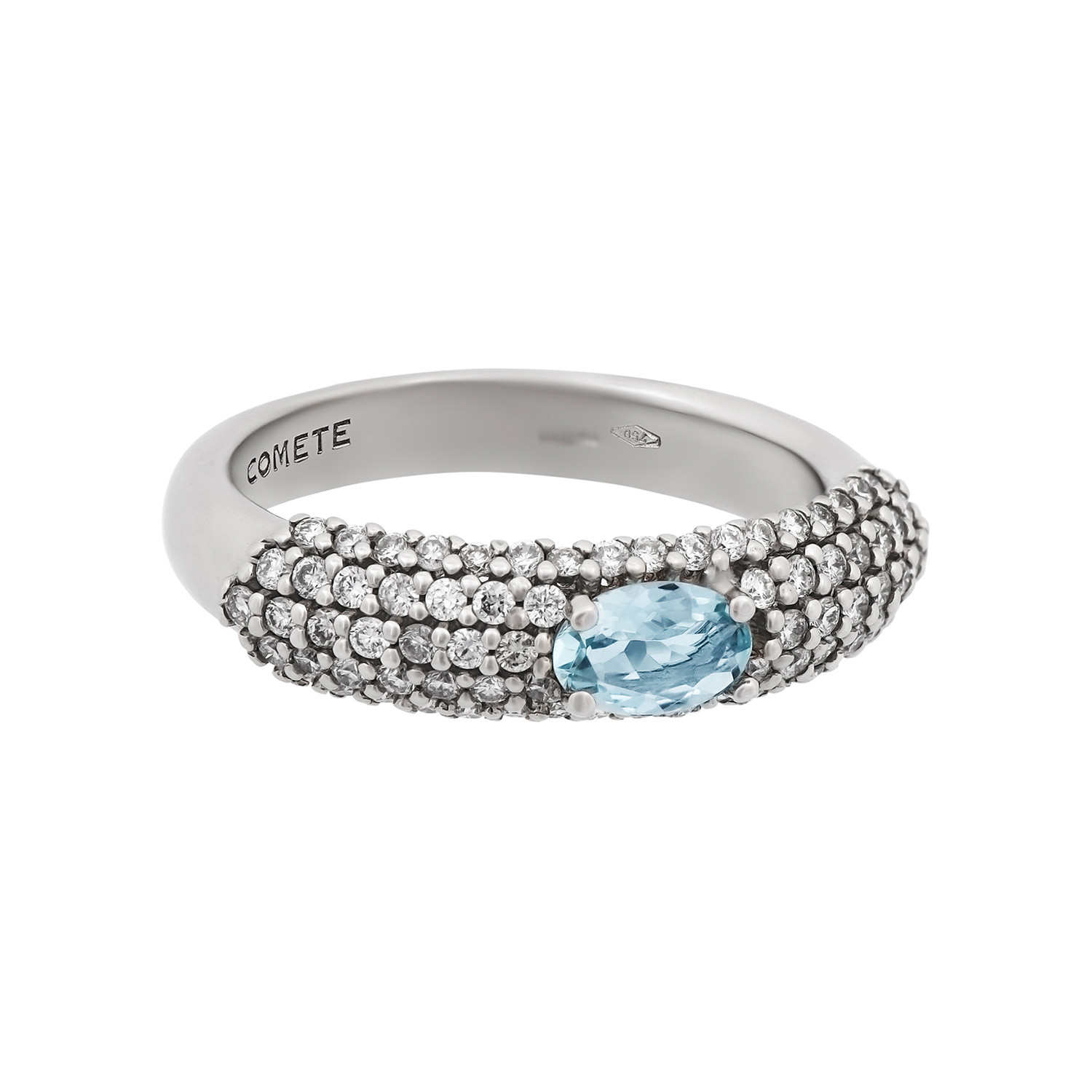 Vintage Comete Gioelli 18k White Gold Diamond + Aquamarine Ring // Ring Size: 7