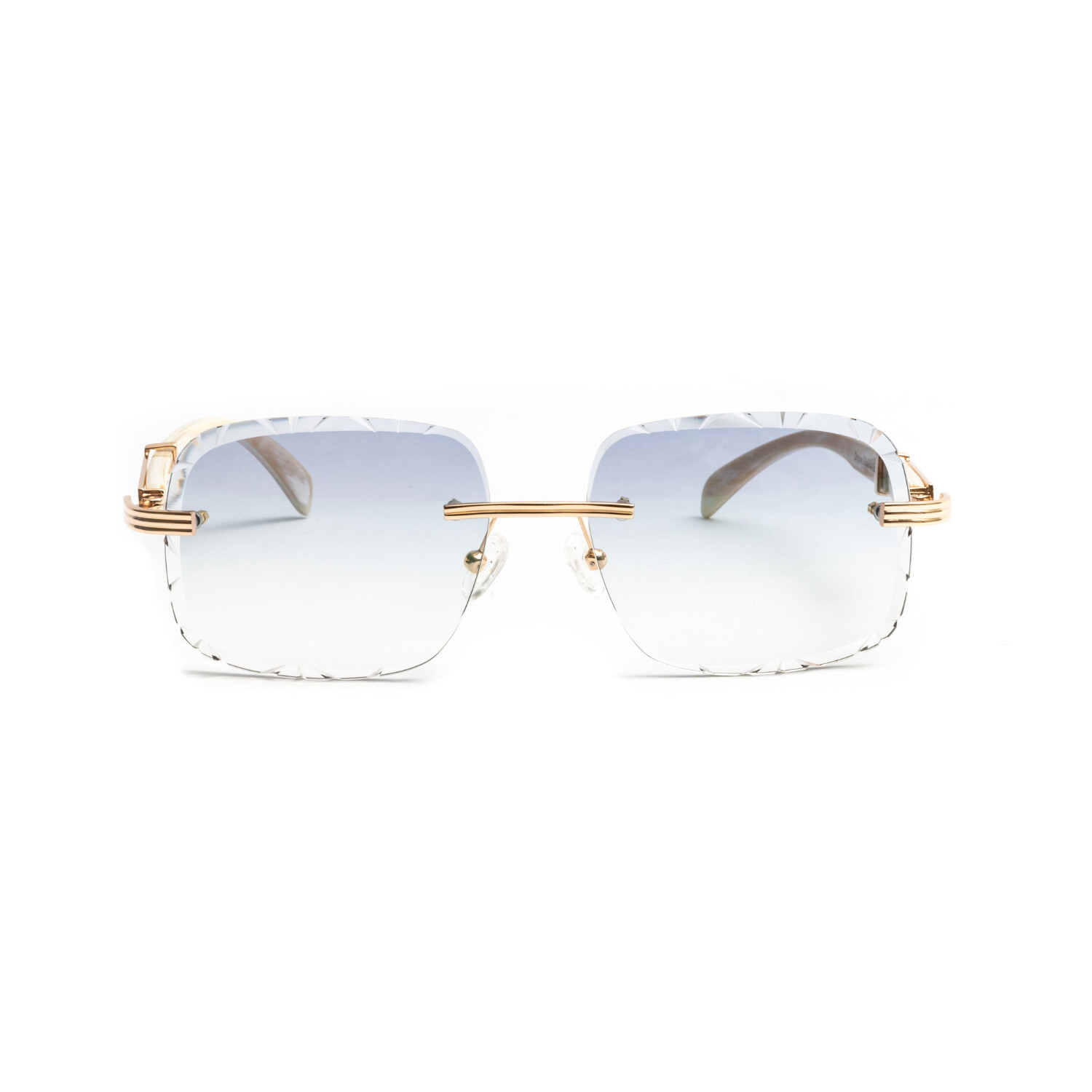 Our new rimless sunglasses feature an 18KT gold plated frame, genuine buffalo horn temples and our signature gradient lenses with diamond cut edges and double AR coating!