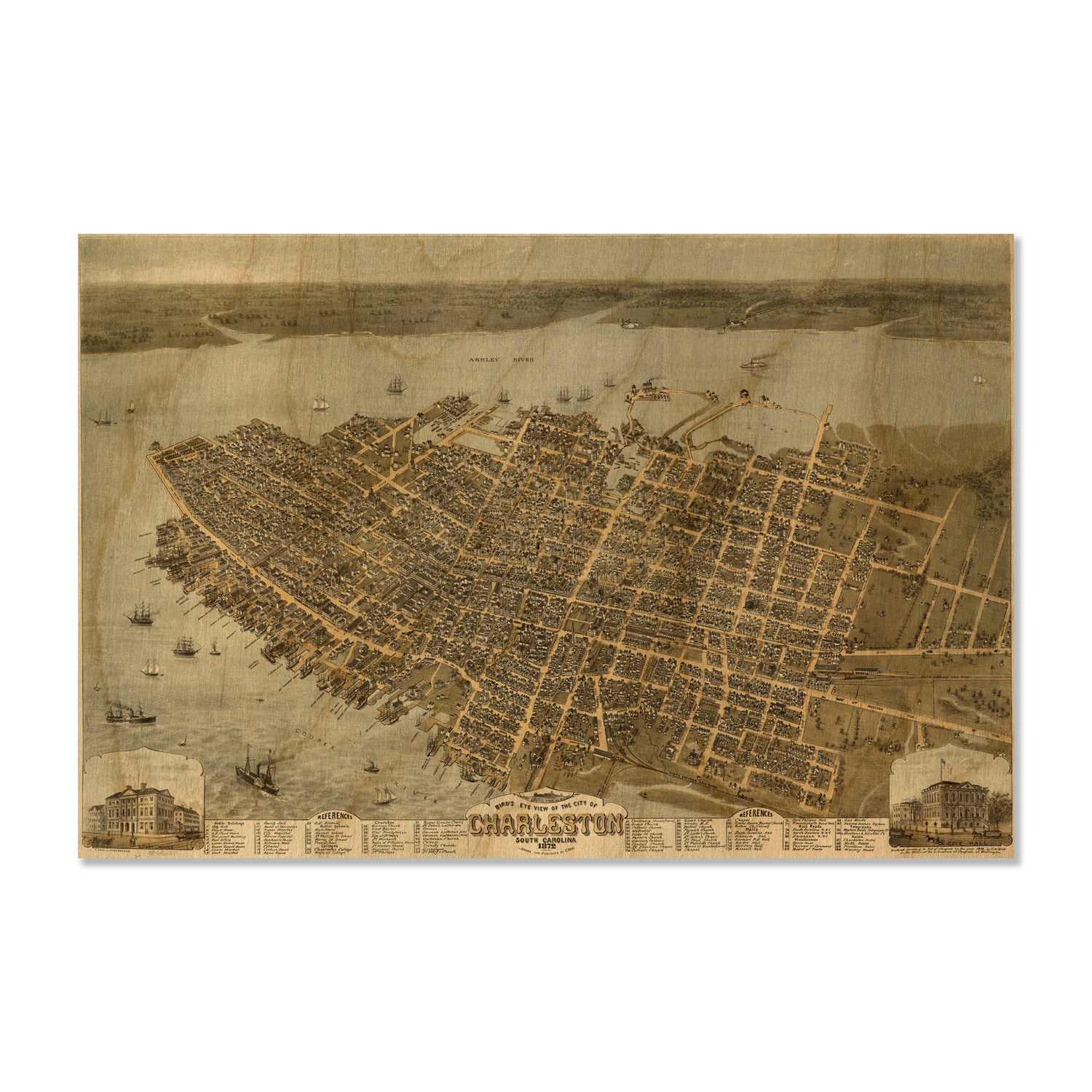 This physical map of Charleston circa 1872 will imbue your home with the warmth and rich history of a fine antique. Printed directly on thick birchwood — whose grain is left in full to add texture and character — this piece is made with everlasting UV-curable ink so no matter where you live, it will make a timeless statement.