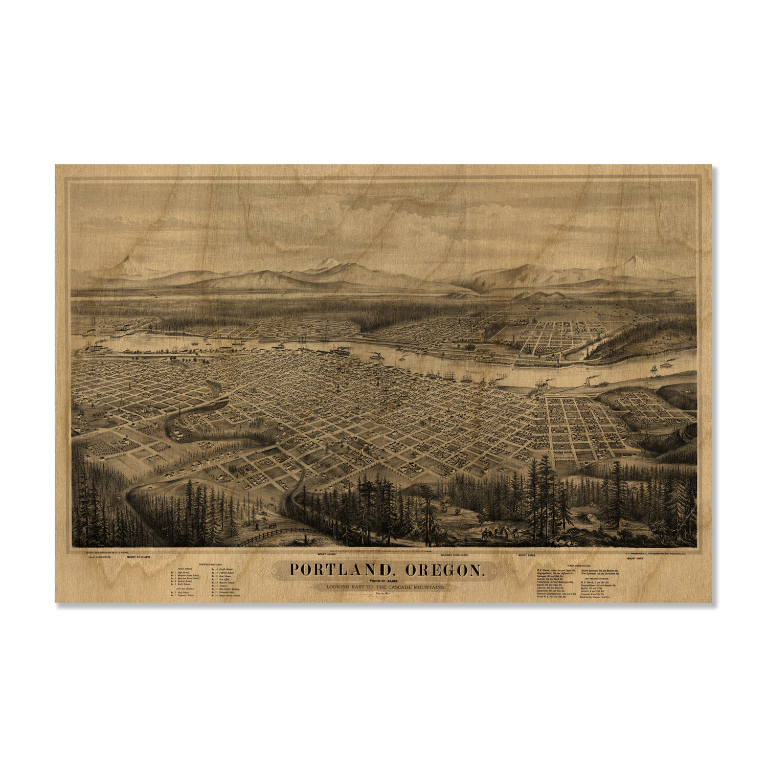 This physical map of Portland circa 1879 will imbue your home with the warmth and rich history of a fine antique. Printed directly on thick birchwood — whose grain is left in full to add texture and character — this piece is made with everlasting UV-curable ink so no matter where you live, it will make a timeless statement.