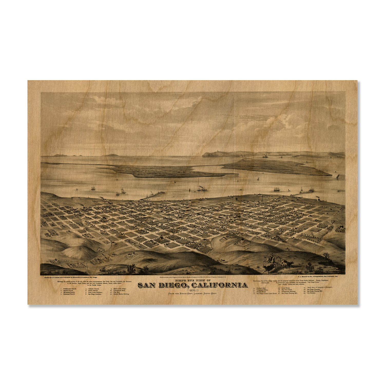 This physical map of San Diego circa 1876 will imbue your home with the warmth and rich history of a fine antique. Printed directly on thick birchwood — whose grain is left in full to add texture and character — this piece is made with everlasting UV-curable ink so no matter where you live, it will make a timeless statement.