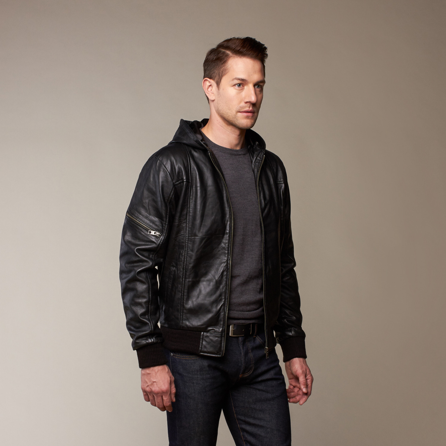 The luxurious Hector Jacket is made from 100% lambskin, known for being softest and most comfortable type of leather available on the market. This soft, buttery jacket features a hood and ribbed hem, and will fit close to the body like all leather jackets should.