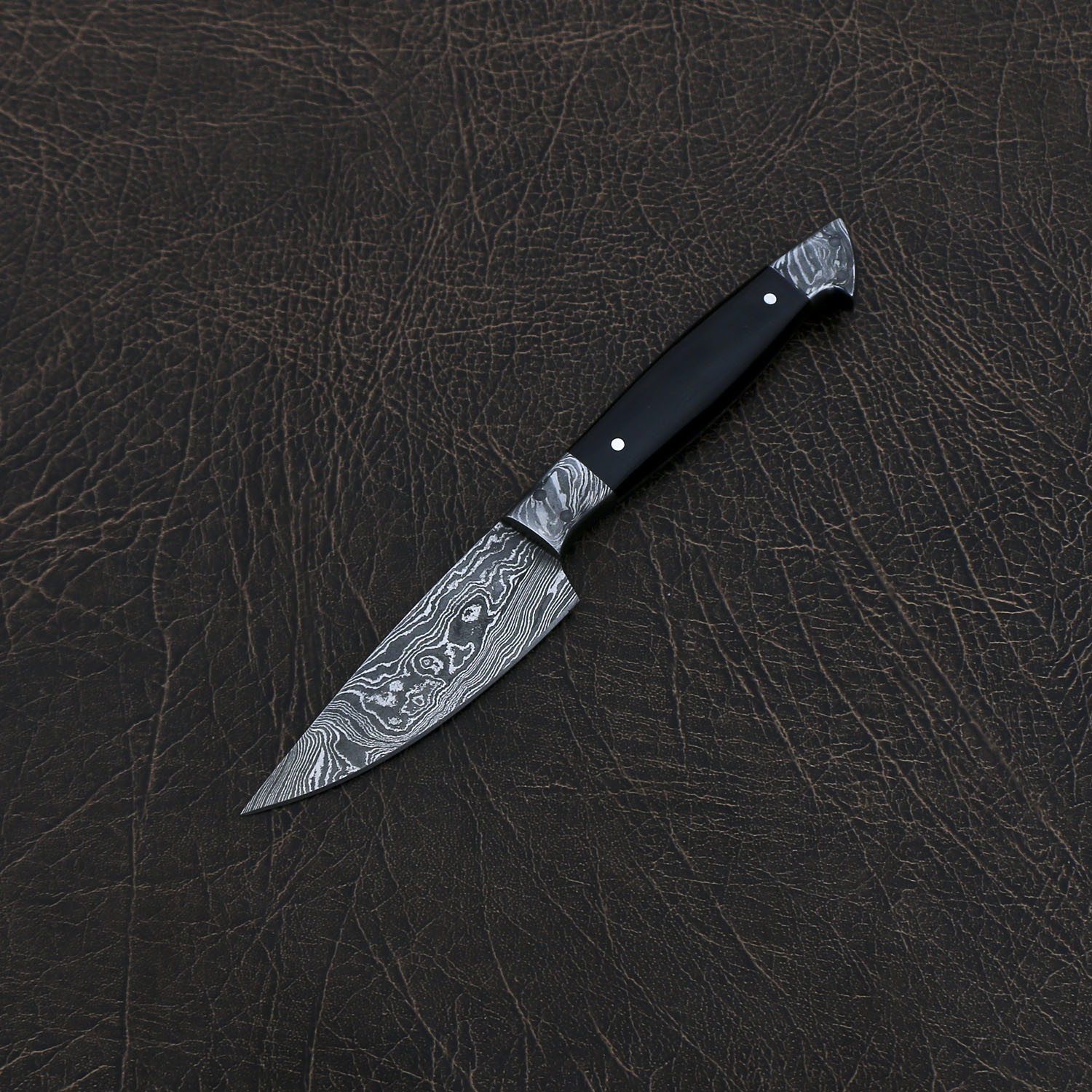 — Handle Material: Buffalo Horn With Damascus Steel Bolsters