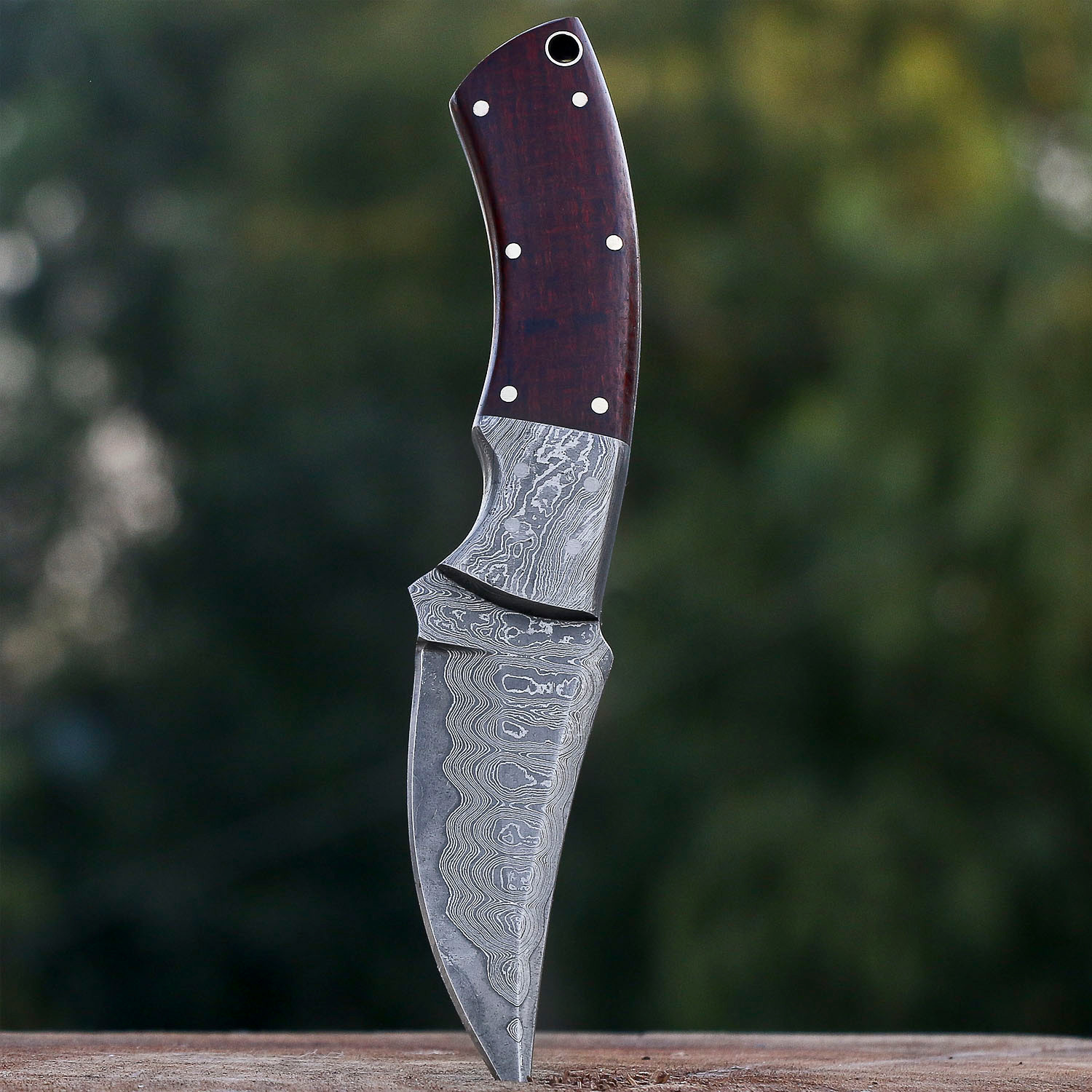 This bold and attention grabbing Damascus steel blade is formed by hundreds of layers of hardened steel, pressed together in an intense forging process for unparalleled durability and sharpness. Complete with a handle made from exotic materials, each blade arrives hand-sharpened and ready for duty.